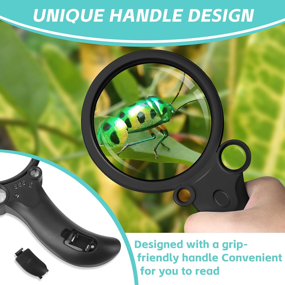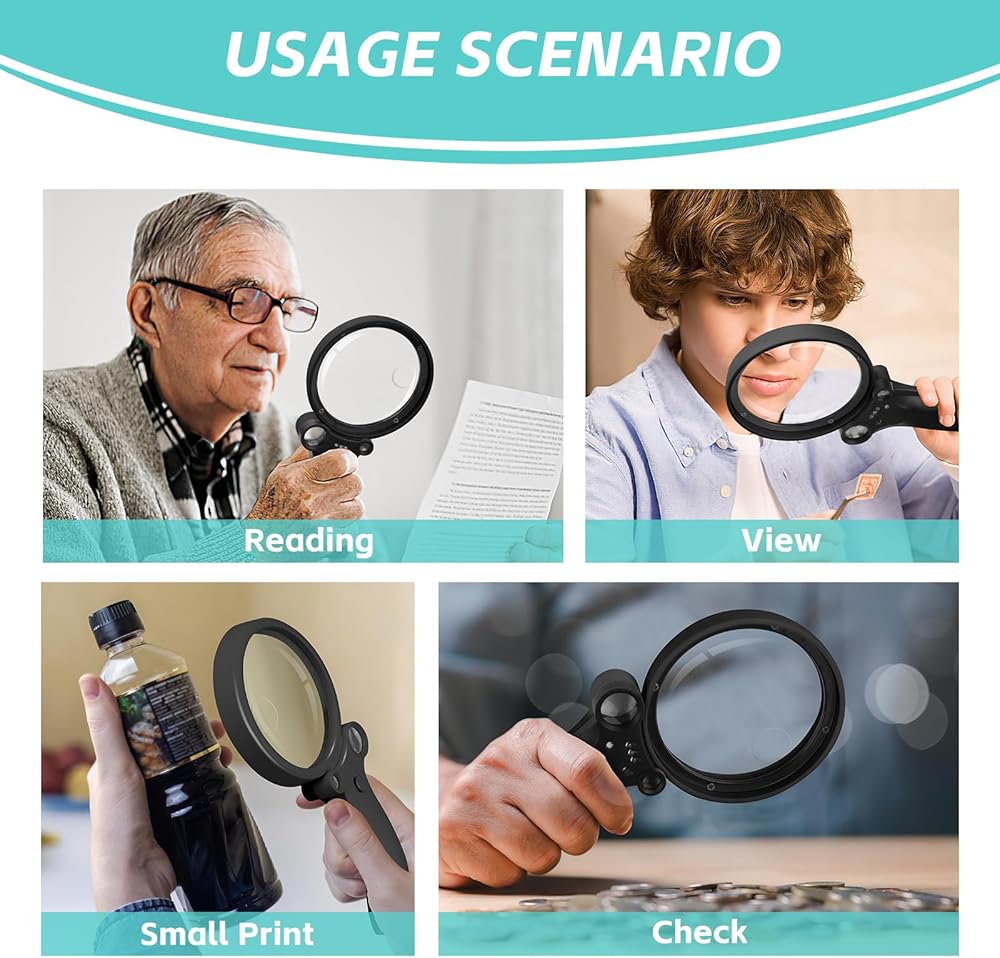 هدية مثالية لكبار السن: المكبر المحمول مثالي لكبار السن للقراءة ولمعظم الأشخاص ذوي الرؤية المنخفضة أو الضعيفة؛ أيضًا للأطفال الذين يحبون استكشاف أشياء جديدة! يعد مكبر القراءة المزود بالضوء مثاليًا لقراءة الكتب والخرائط والمجلات والكوبونات والوصفات الطبية والمطبوعات الصغيرة على زجاجات الأدوية.
