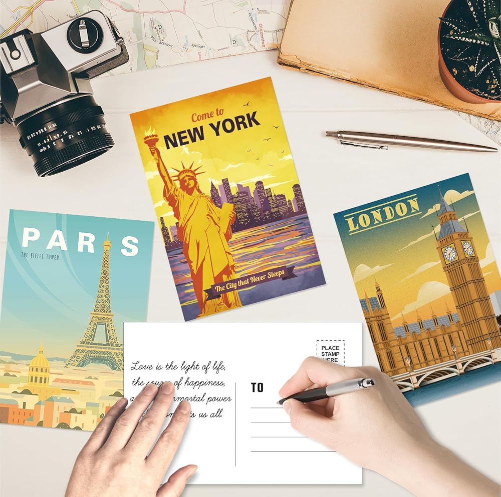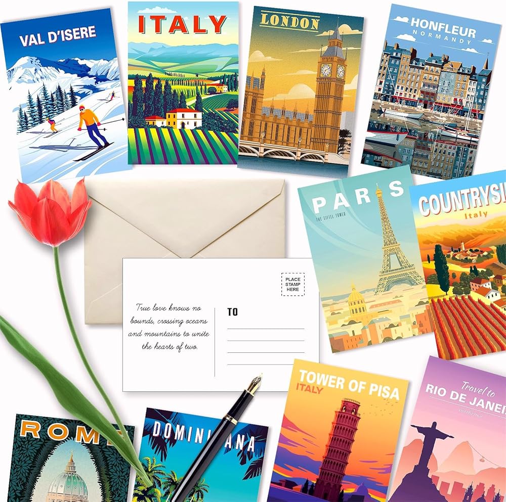 جودة ممتازة: تتم طباعة كل بطاقة بريدية على ورق بطاقات عالي الجودة بوزن 305 جرامًا للمتر المربع مع تصميم جميل على ورق بطاقات سميك شبه لامع مع لمسة نهائية غير لامعة، والجزء الخلفي من البطاقة البريدية على شكل بطاقة بريدية أفقية مع مساحة كتابة كبيرة ومسبقة. الخطوط المطبوعة للسماح لك بالتعبير عن المزيد من المعلومات