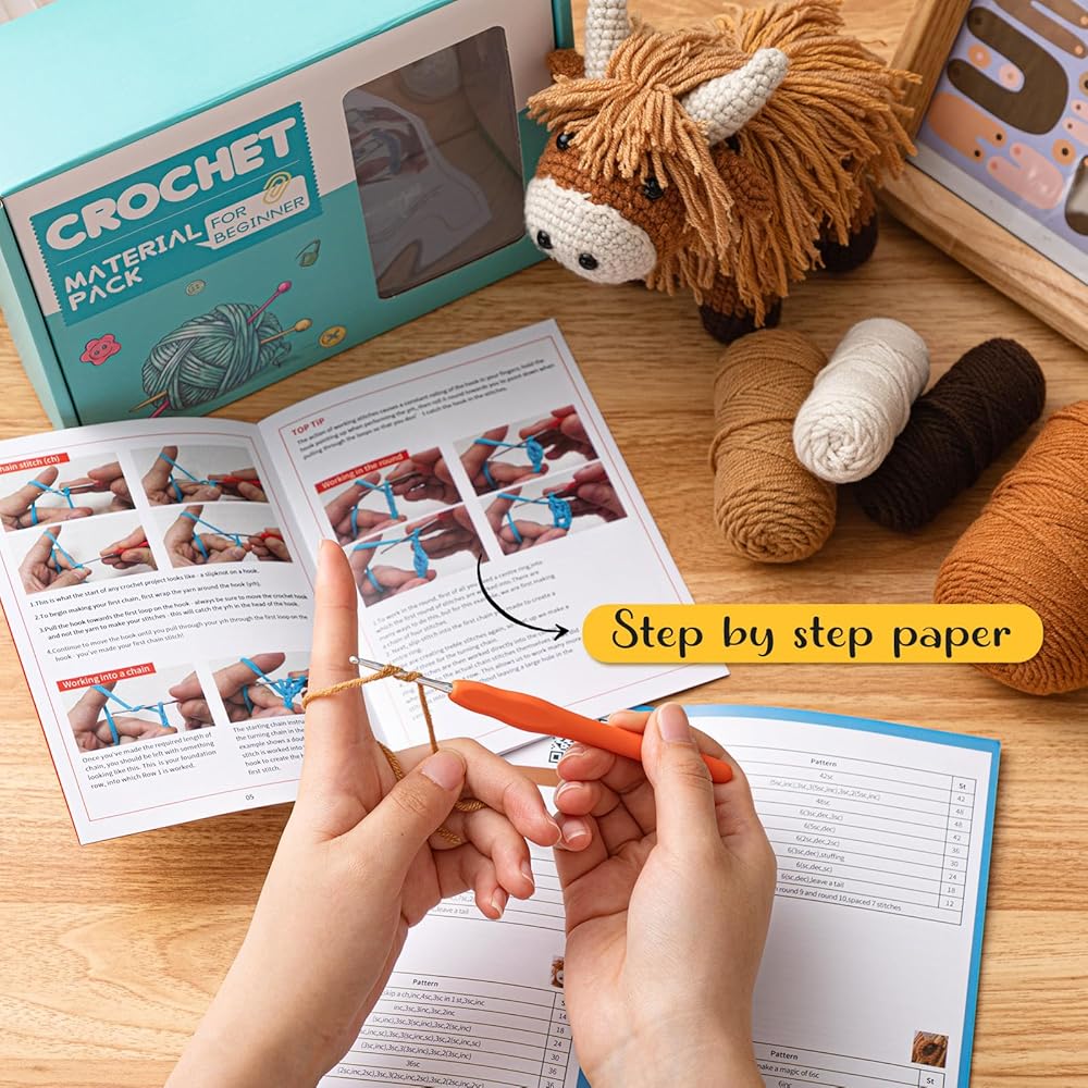 • Gift of Creativity: packed in an exquisite box, our highland cow crochet kit makes for a thoughtful gift; It's an ideal choice for beginners, lovers of the highland cow and anyone intrigued by crochet; Be it a birthday, anniversary, holiday season or any day you want to make special, this handmade crochet kit is an ideal heartwarming gift