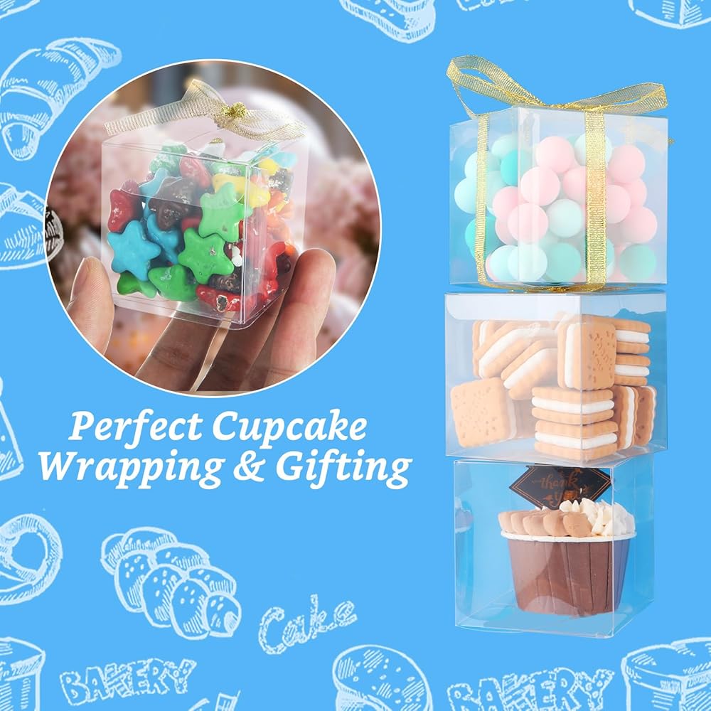 مادة فاخرة: صناديق الهدايا الشفافة الخاصة بنا مصنوعة من بلاستيك PET، قوي ومتين، وليس من السهل تمزيقه. علبة هدايا شفافة مقاس 3 × 3 × 3 يمكن ملؤها بالمعجنات أو الحلوى أو قنابل الشوكولاتة أو البسكويت أو الكعك أو الهدايا الصغيرة. مظهر شفاف ولامع، يمكنك عرض أغراضك المعبأة وترك انطباع جيد