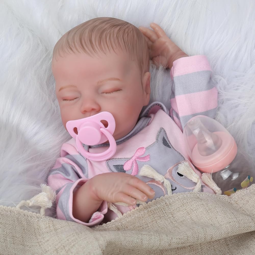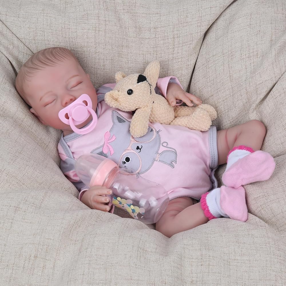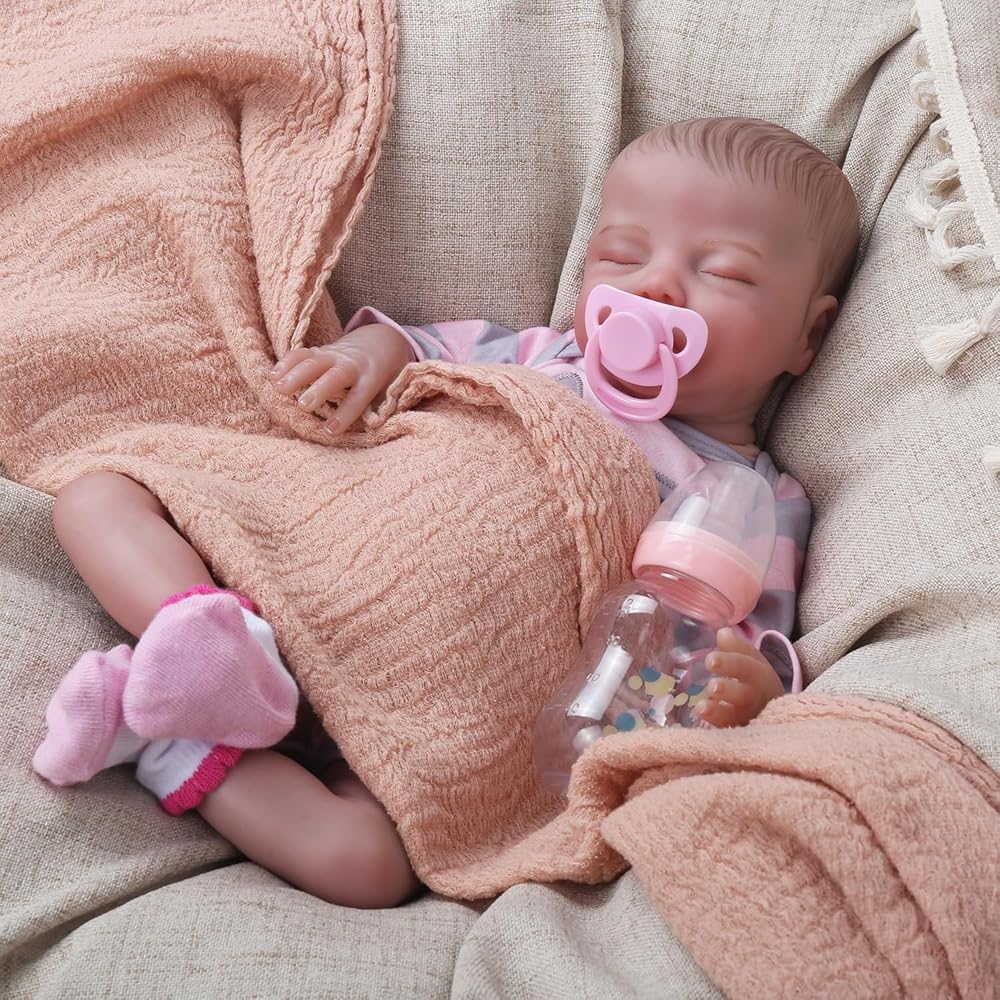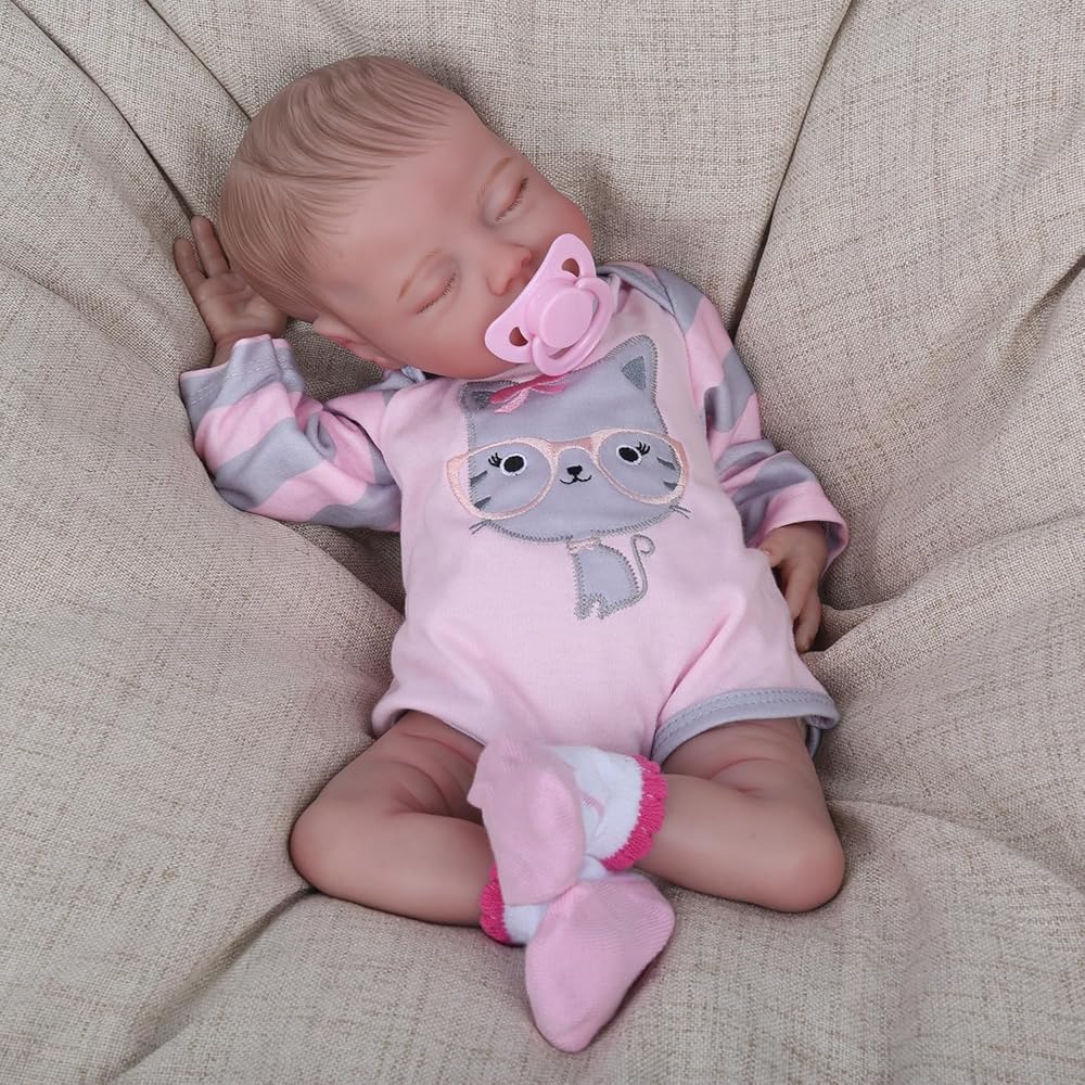 مقاس الطفل: يبلغ طول دمية الطفل النابضة بالحياة 45.72 سم من الرأس إلى أخمص القدمين. يمكن ارتداء دمية الطفل النائمة هذه بملابس الأطفال حديثي الولادة (0-3 أشهر) لإكمال تغيير الزي