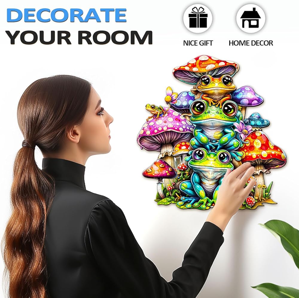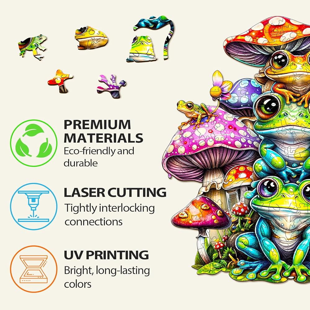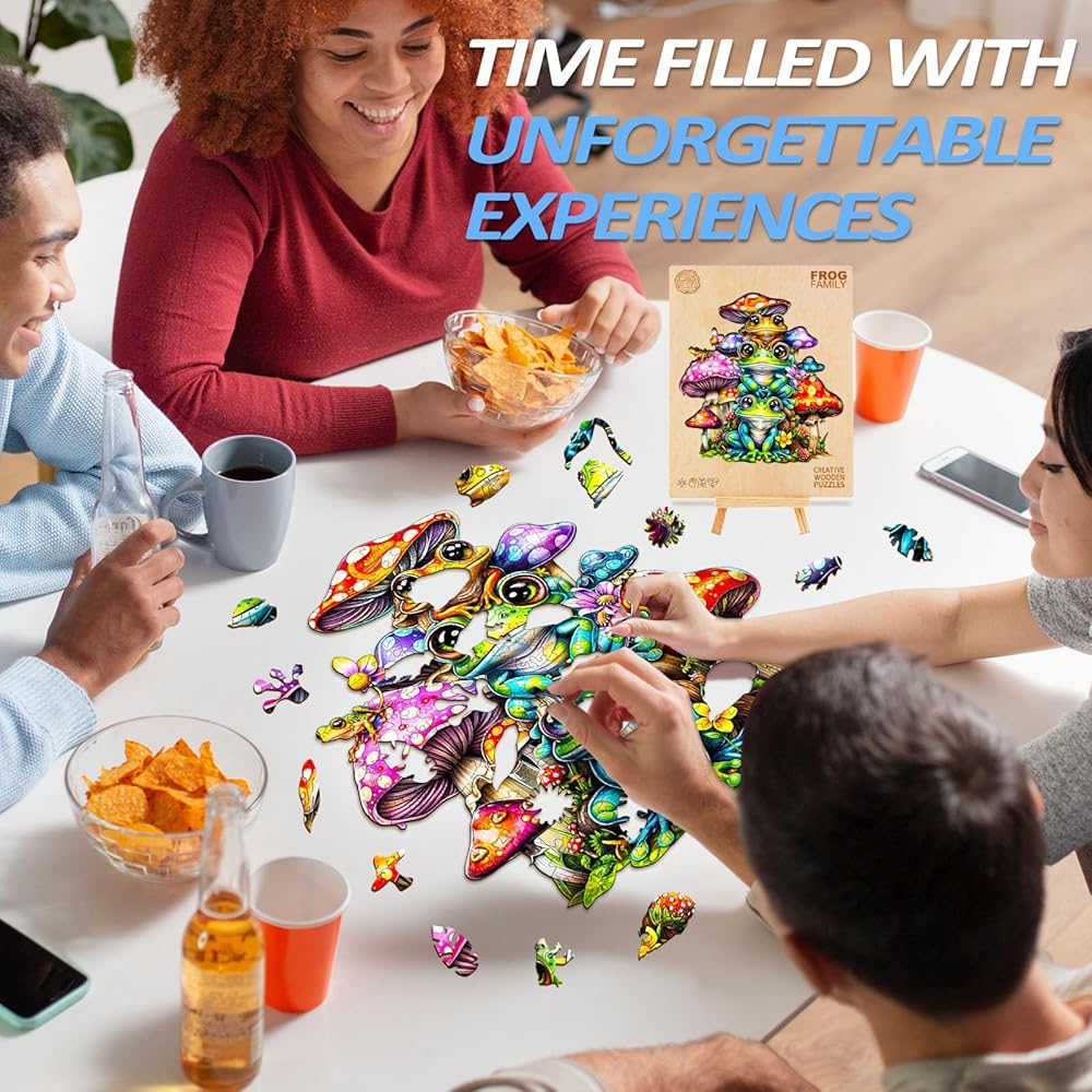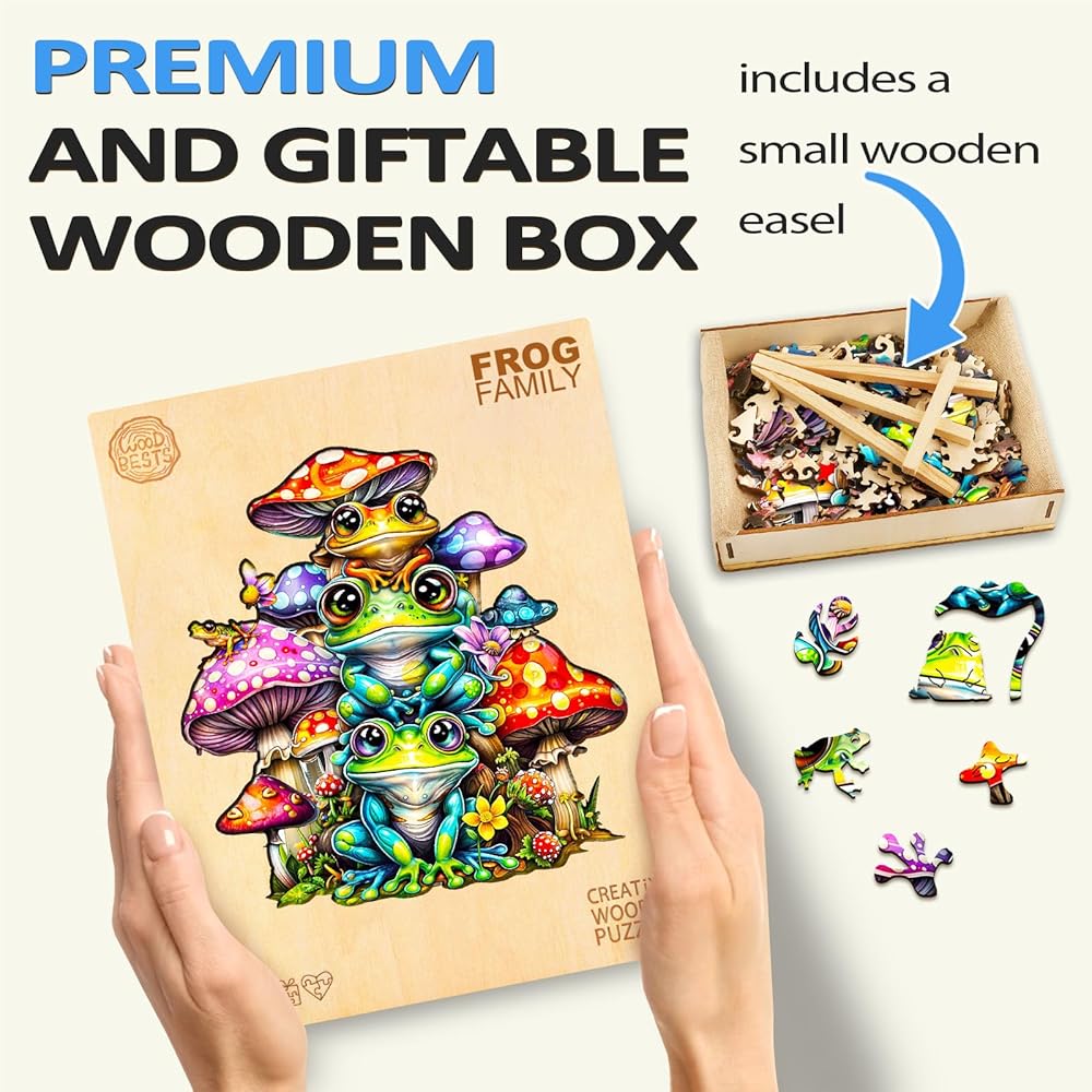أحجية خشبية للبالغين من وودبيستس، أحجية عائلة الضفدع (متوسط، 190 قطعة، 11.4 بوصة × 10.9 بوصة) صندوق خشبي جميل، أحجية الصور المقطوعة الخشبية ذات شكل فريد، هدايا عيد ميلاد للبالغين والأطفال، لعبة عائلية