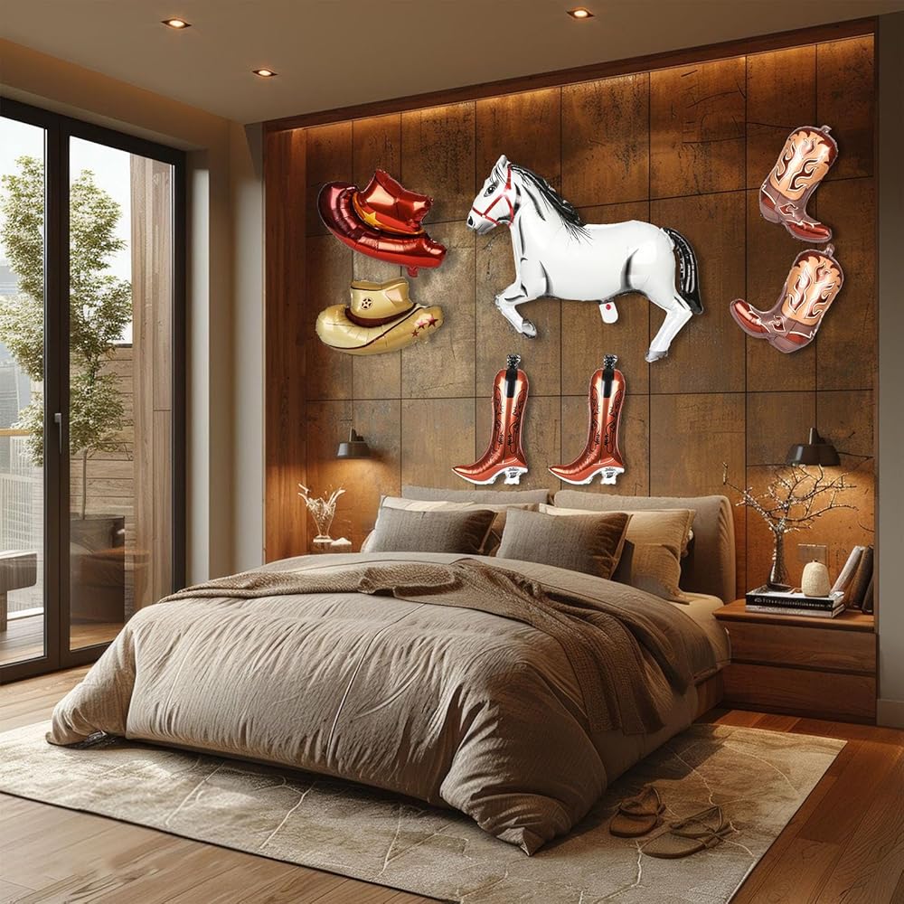 EASY TO INFLATE AND DECORATE: These cowboy balloons come with a convenient self-sealing feature, easy to inflate and install. To prevent over-inflation, fill the boot balloons with 80-90% air. When filled with helium, the balloons will float