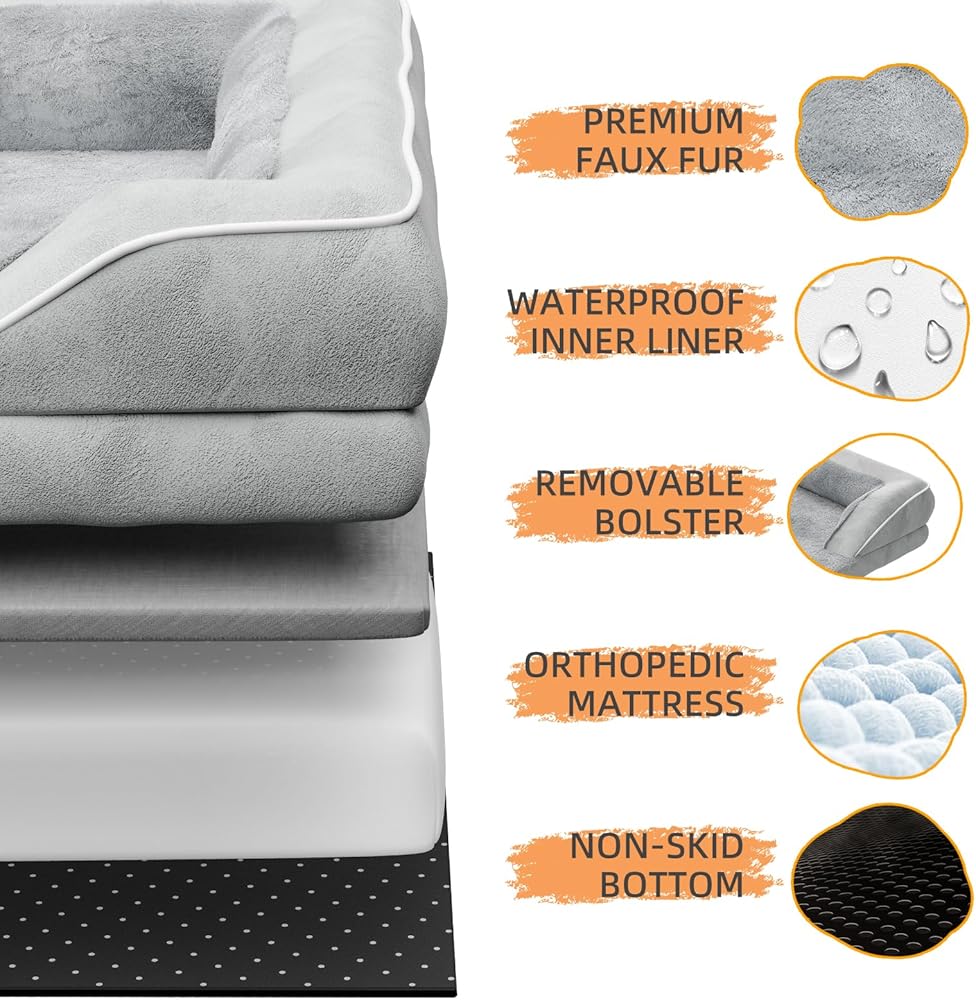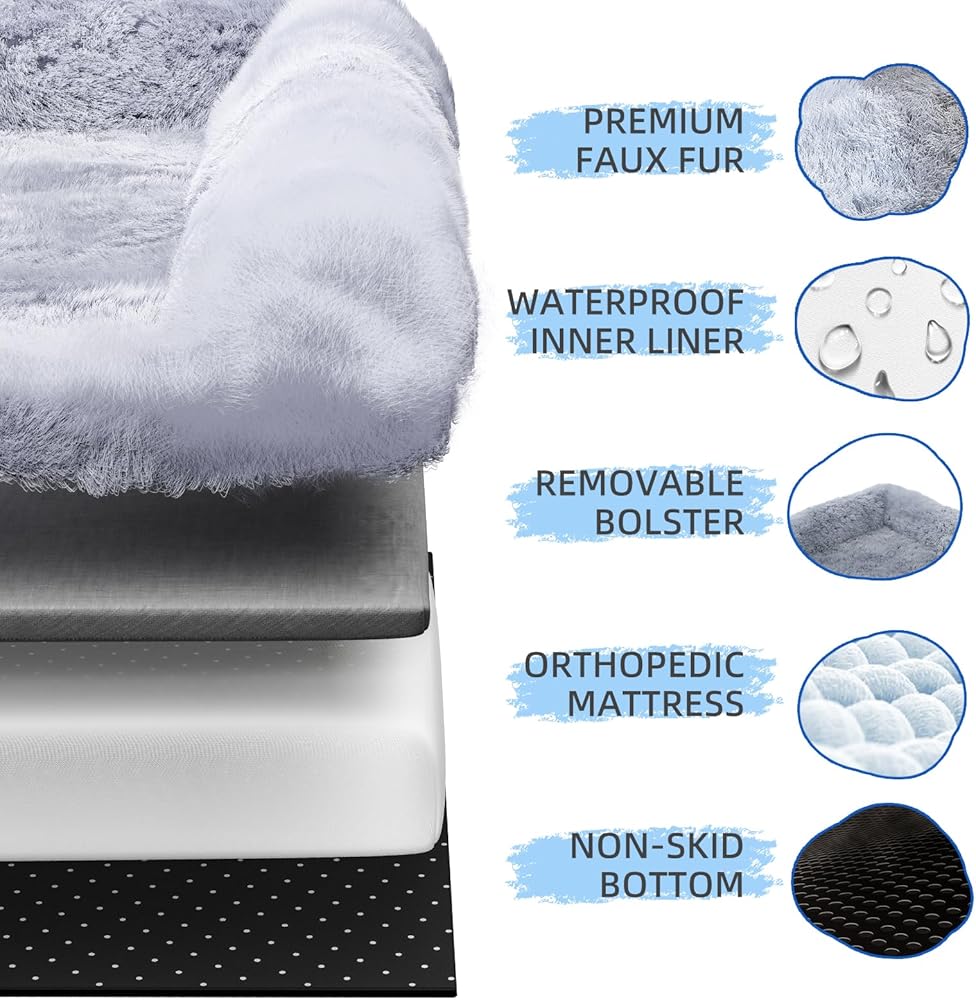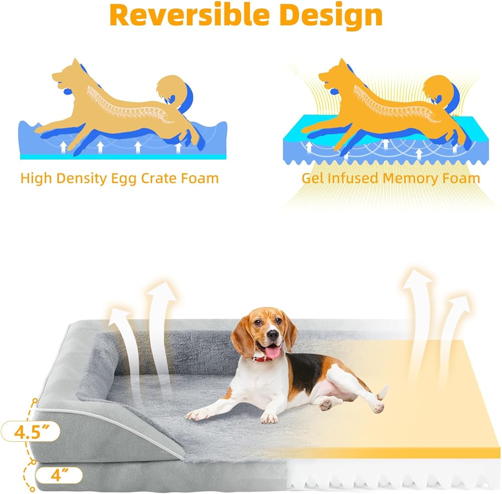 أسرّة للكلاب لتقويم العظام بسيطة الحجم، سرير أريكة للكلاب مع غطاء قابل للغسل، سرير للحيوانات الأليفة مصنوع من إسفنج قفص البيض مقاوم للماء مع جوانب، رمادي