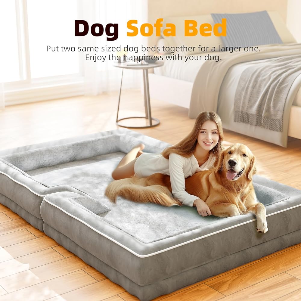 • 【تصميم وسادة غير قابلة للانزلاق】قماش أكسفورد الموجود في الجزء السفلي من سرير الكلاب الكبير جدًا هذا مغطى بحبيبات مطاطية غير قابلة للانزلاق، والتي يمكن تثبيتها على الأرض لضمان عدم انزلاق كلبك بسهولة عند اللعب أو النوم على السرير. سرير كبير جدًا للكلاب، مما يوفر لكلبك شعورًا بالأمان.