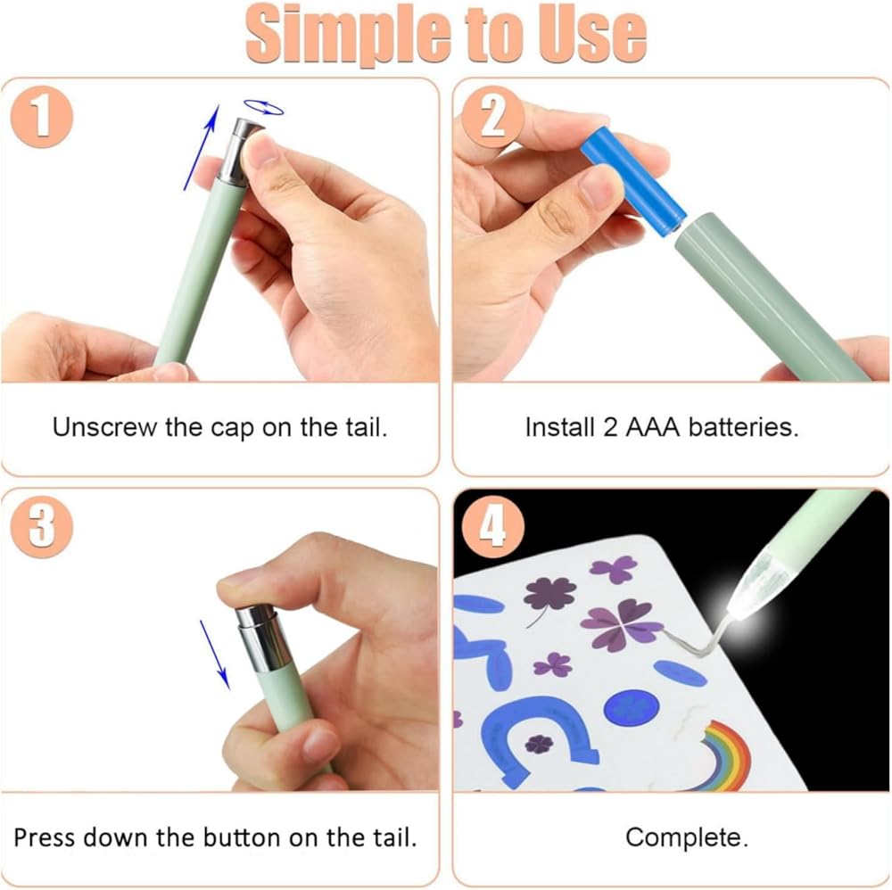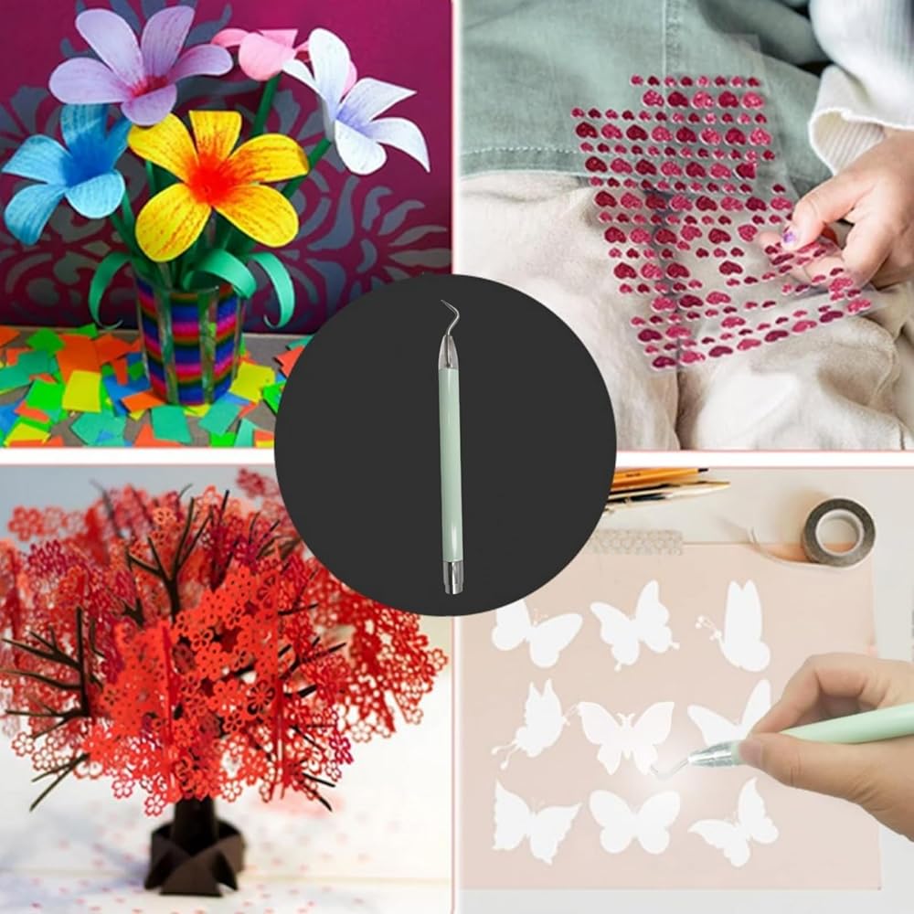 【إضاءة معززة】تم تصميم أداة إزالة الأعشاب المصنوعة من الفينيل بمصابيح LED على طرف القلم الشفاف. يزيد هذا التحسن من السطوع في منطقة القطع الصغيرة، ويوسع مجال رؤيتك، مما يساعد على إزالة القطع الصغيرة، بما في ذلك القطع السلبية من الفينيل والكي من الورقة الحاملة، أو إخراج قطع سلبية صغيرة من صورة مخزون البطاقة المقطوعة.