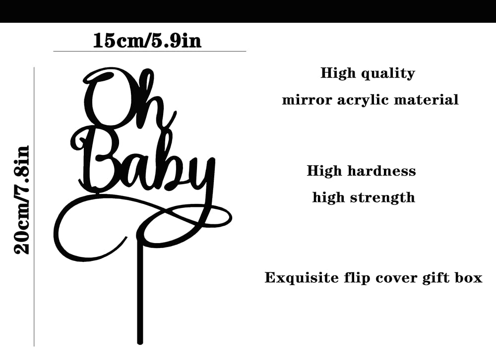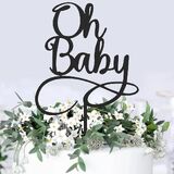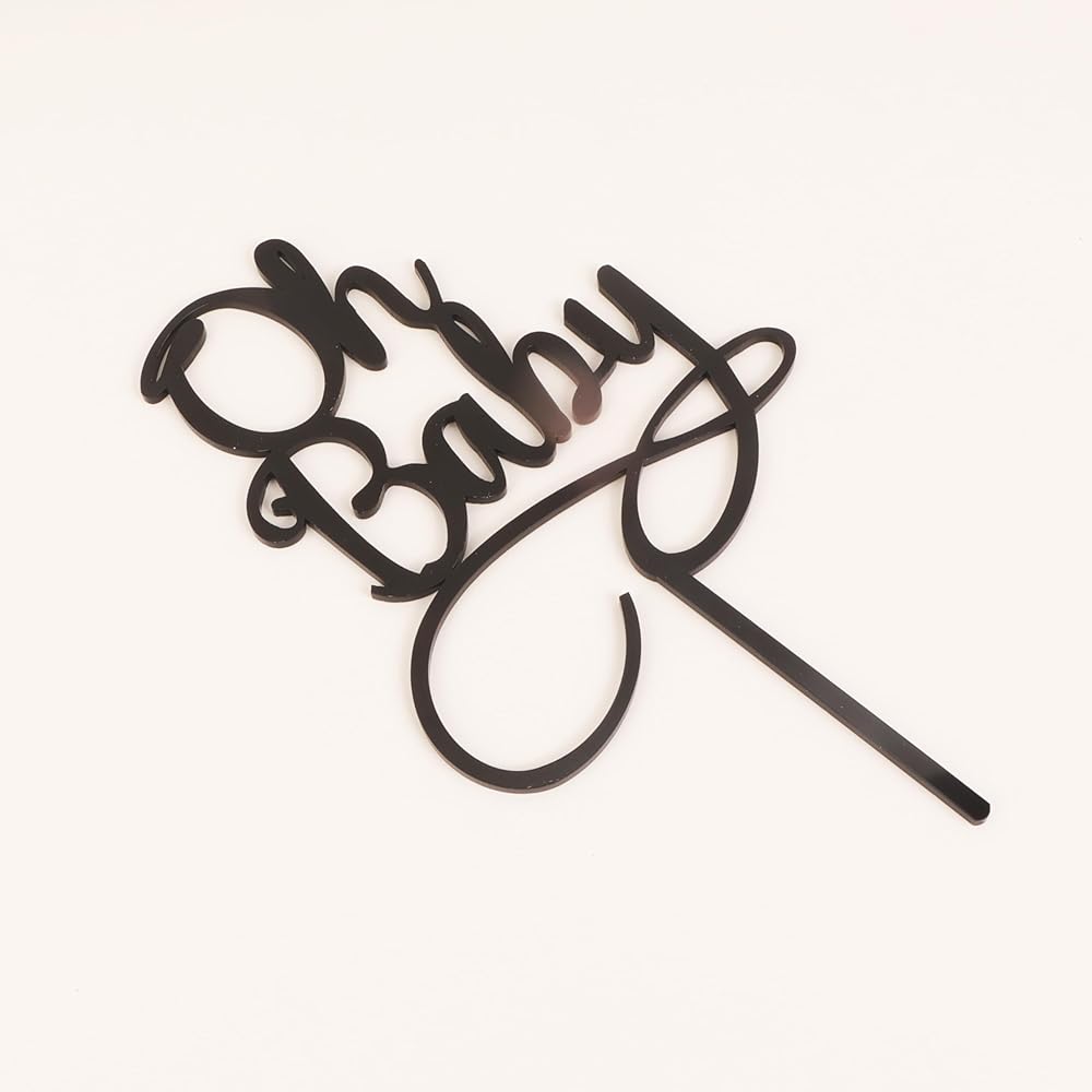 OH Baby Cake Topper - Glitter Black Acrylic Baby Shower Cake Decorations ، Gender Cansle Cake Pick (Black)