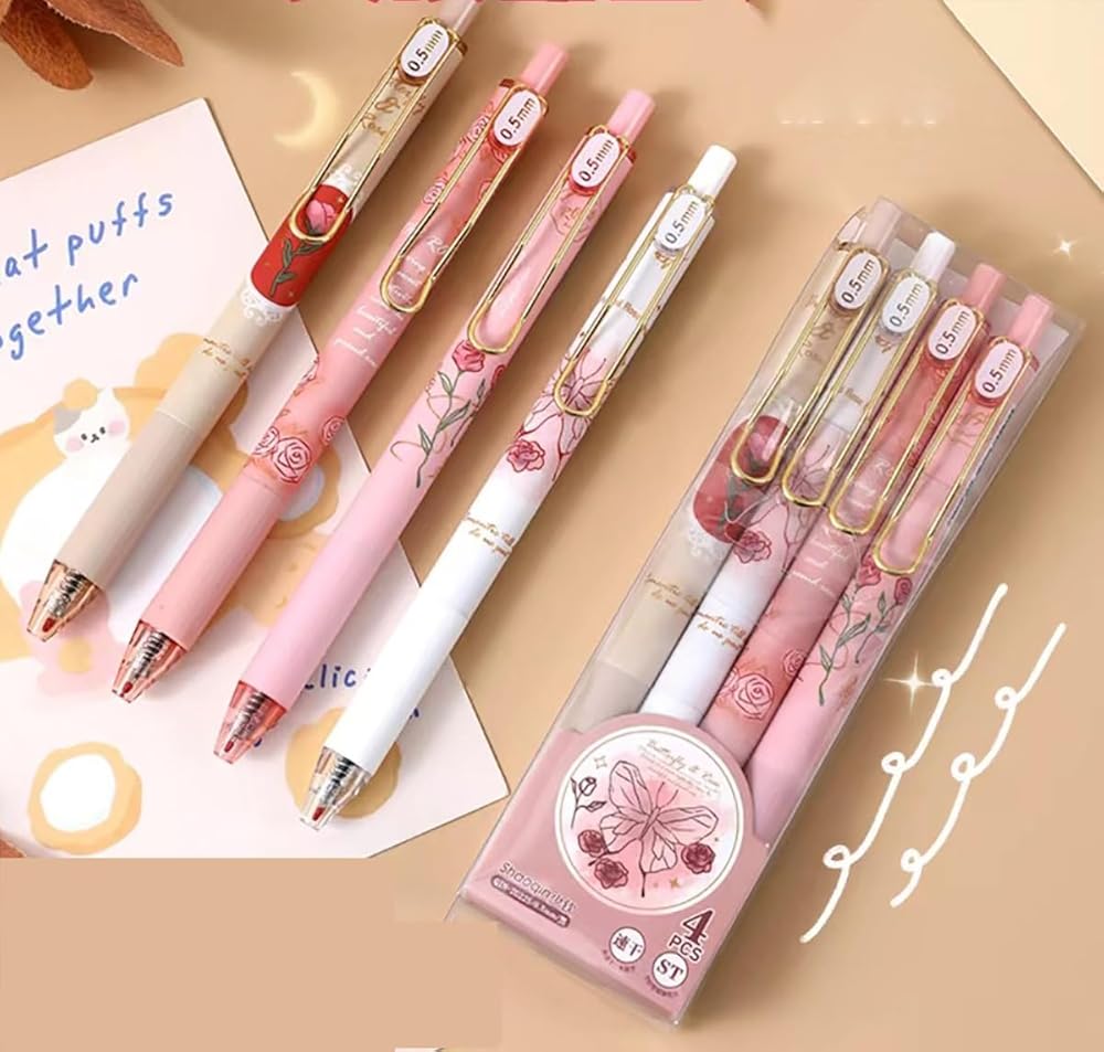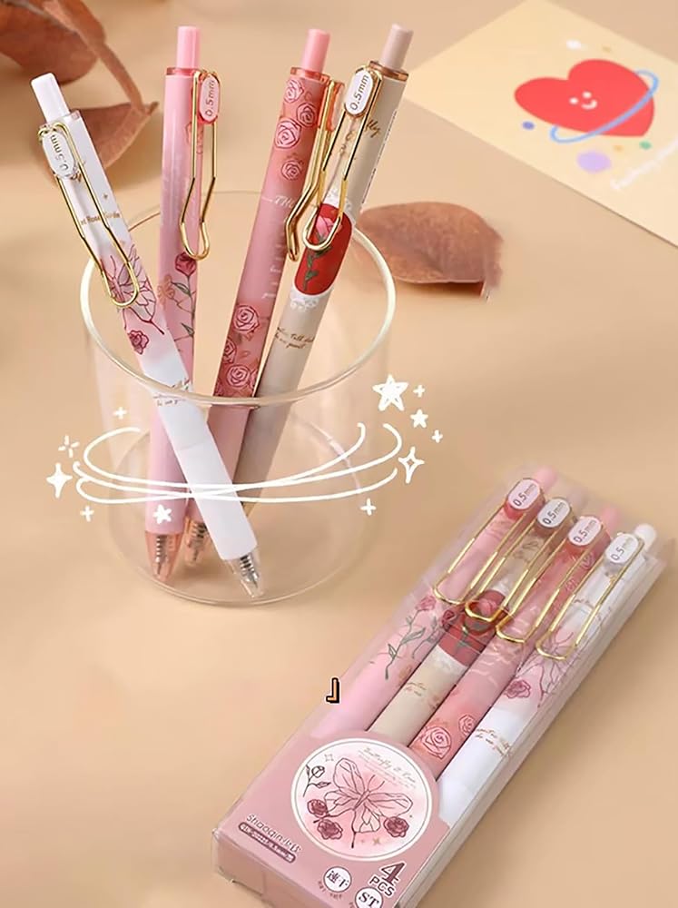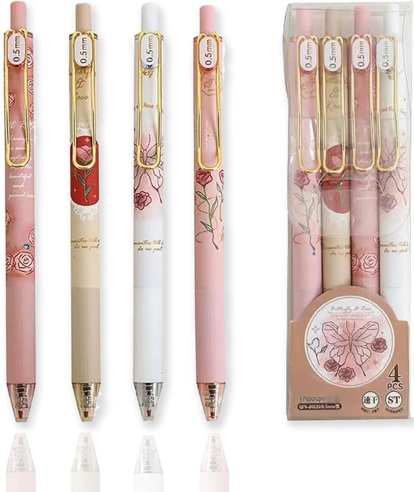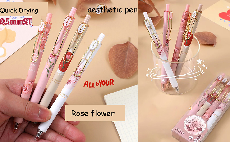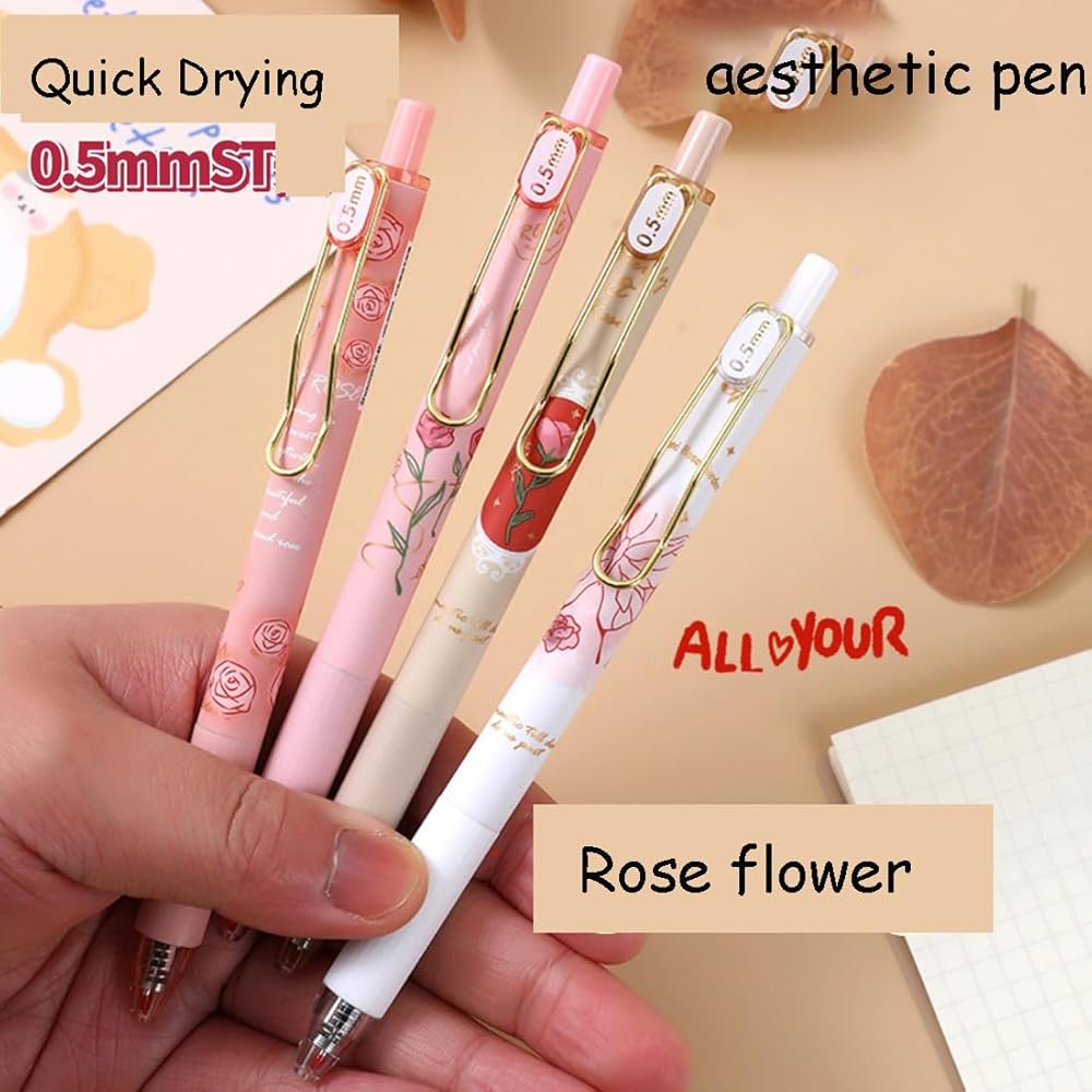 سوف تحصل على 4 قطع من الأقلام الجمالية اللطيفة بتصميمات زهور الورد المختلفة، كتابة سلسة وتجف بسرعة، لا تسرب، لا تلطخ، لا تلطخ، لا كرات، قبضة ناعمة ومريحة، مجموعة أقلام هدية جيدة للنساء والفتيات.