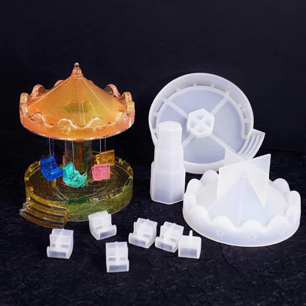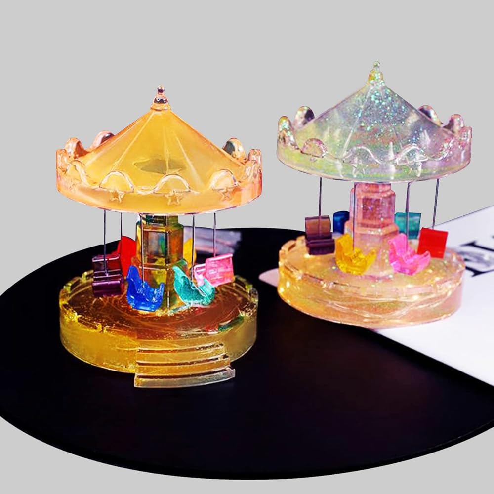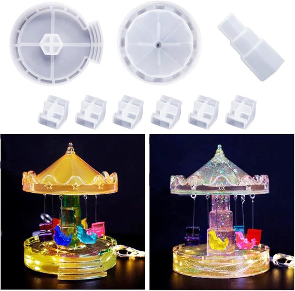 Unique merry-go-round shape design diy crystal epoxy resin molds with exquisite workmanship, easy to use. You can make a lifelike and charming carousel ornament by yourself with this silicone molds set.