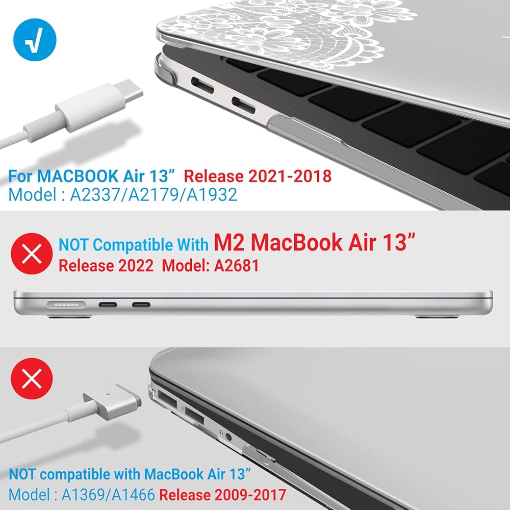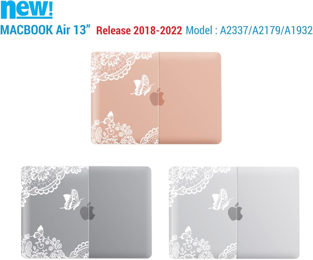 IBenzer متوافق مع حافظة MacBook Air 13 بوصة الجديدة 2022 2021 2020 M1 A2337 A2179 A1932، حافظة بلاستيكية صلبة لجهاز Mac Air 13 Retina Display مع Touch ID (2018-2022)، LACE، MAD-T13LACE