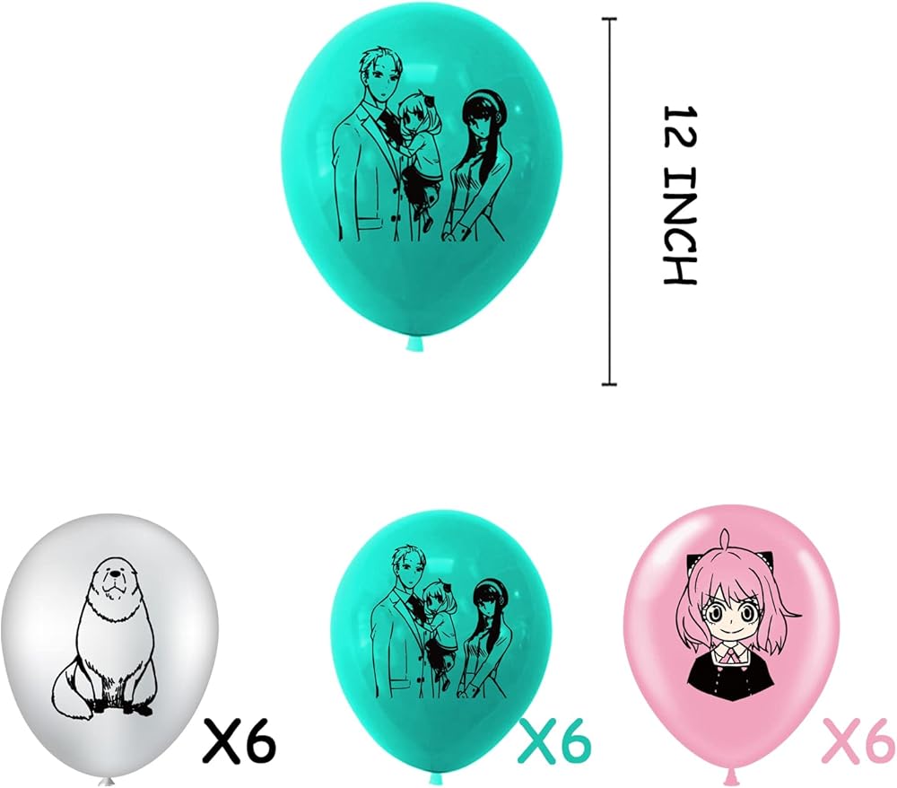 Kawaii ×FAMILY Party Supplies Set Includes: 1 happy birthday banner set, 12 inches*18pcs balloons (3 colors), 1 pcs big cake toppers, 12 pcs cupcake toppers and 10 pcs invitation cards, 20 pcs glue points, 1 roll of ribbon. This product is not intended for use by children 12 years of age and under.