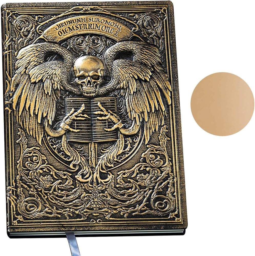 مجلة غير مبطنة - كتاب الجمجمة، نمط فني منقوش ثلاثي الأبعاد بنمط داكن، هدية دفتر ملاحظات بغلاف مقوى A5 دفتر رسم فارغ، 8.4 بوصة × 5.7 بوصة (100 ورقة، 200 صفحة)، نحاس