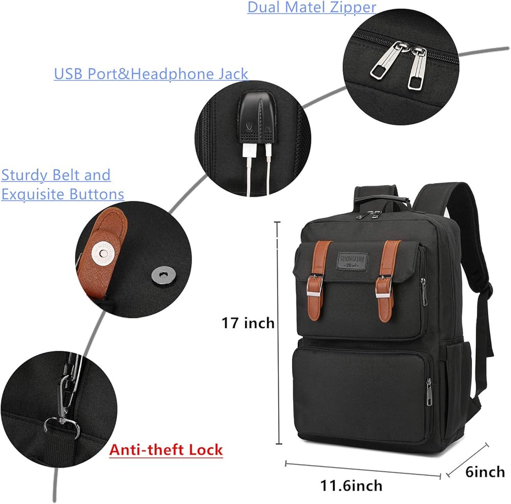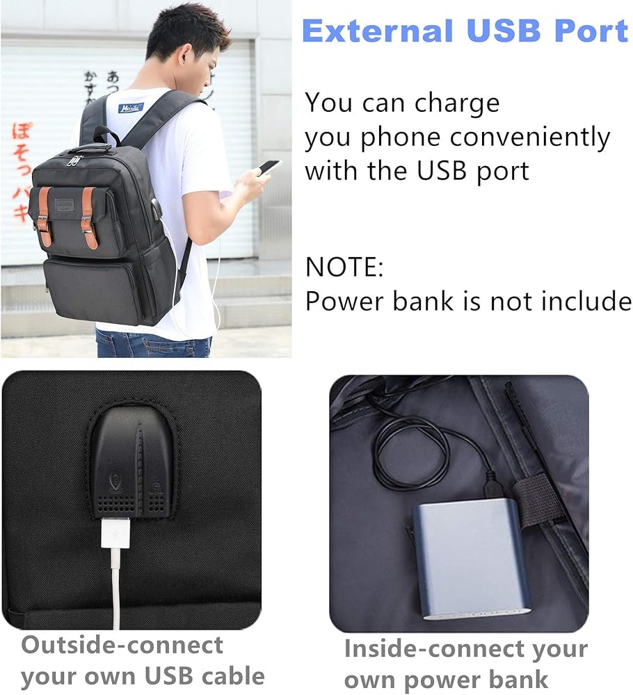 تصميم منفذ USB وسماعة الرأس: مع منفذ شحن USB ومقبس سماعة الرأس ممتد على جانب حقيبة الظهر وكابل شحن مدمج وكابل سماعة رأس بالداخل، يوفر الراحة لشحن هاتفك والاستماع إلى الموسيقى أثناء المشي أثناء السفر. يرجى ملاحظة حقيبة الظهر هذه لا يوجد بنك طاقة مجهز.
