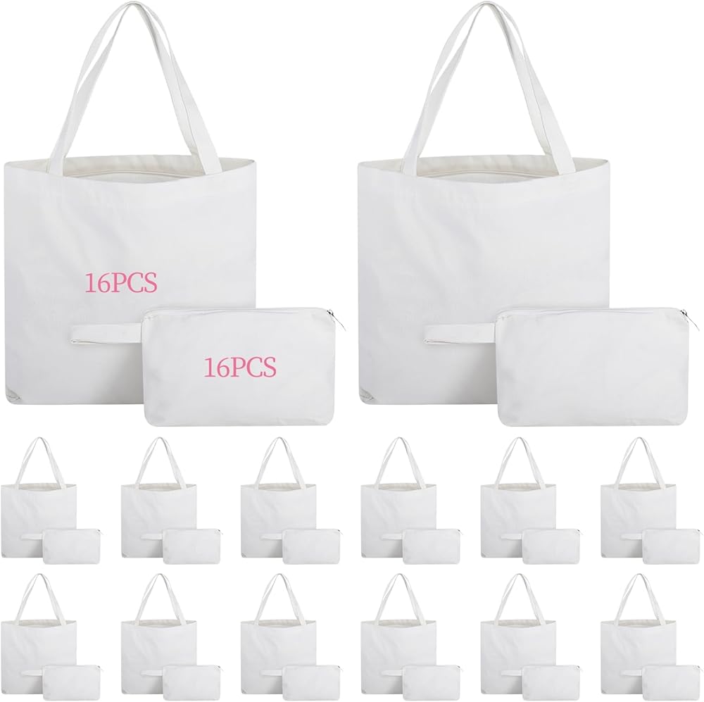 32 قطعة من حقائب اليد من Homaisson بسحاب، حقائب مكياج من القماش القطني بمقاسين، حقائب بقالة قابلة لإعادة الاستخدام للمطبخ، حقائب قماش فارغة بمقابض