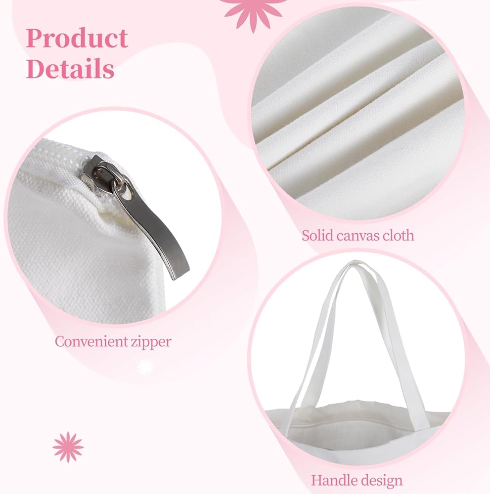• خامة عالية الجودة: هذه الحقائب القماشية ذات السحاب مصنوعة من مادة قماش موثوقة بسمك 12 أونصة تقاوم التمزق والتلف. وهذا يضمن عمرًا رائعًا للحمل باليد والكتف.