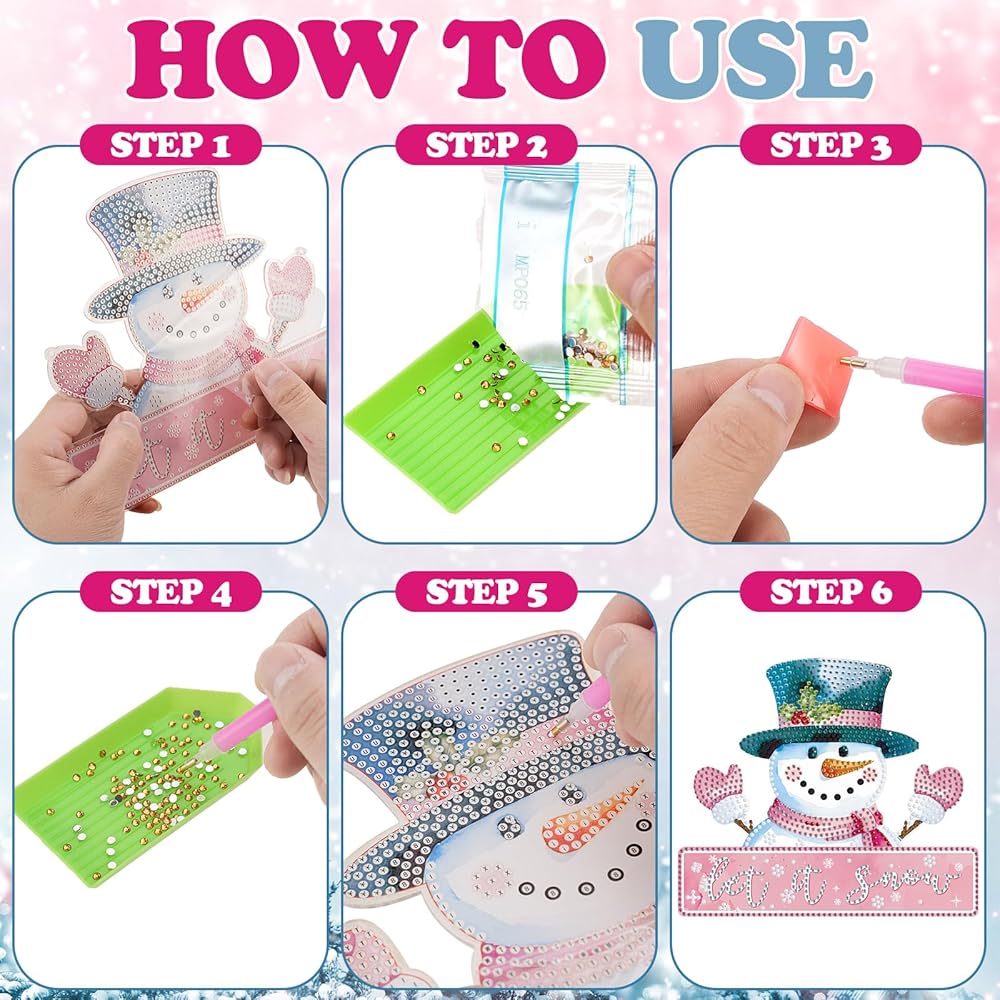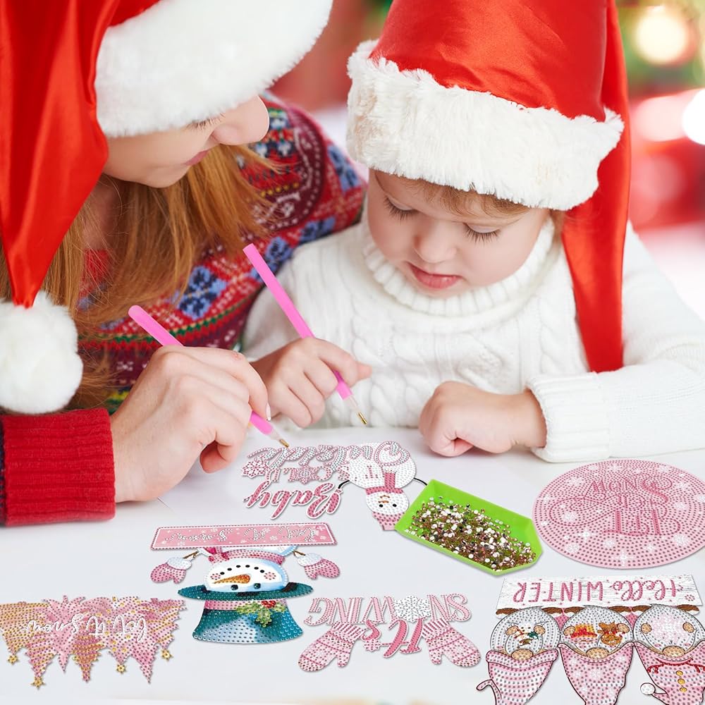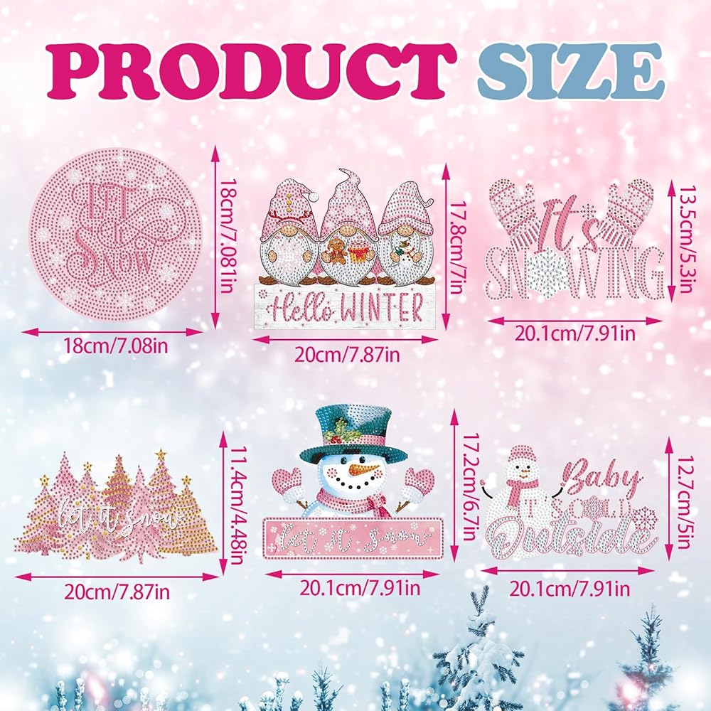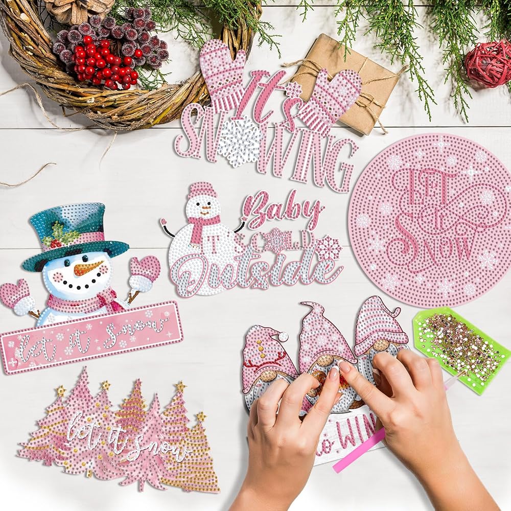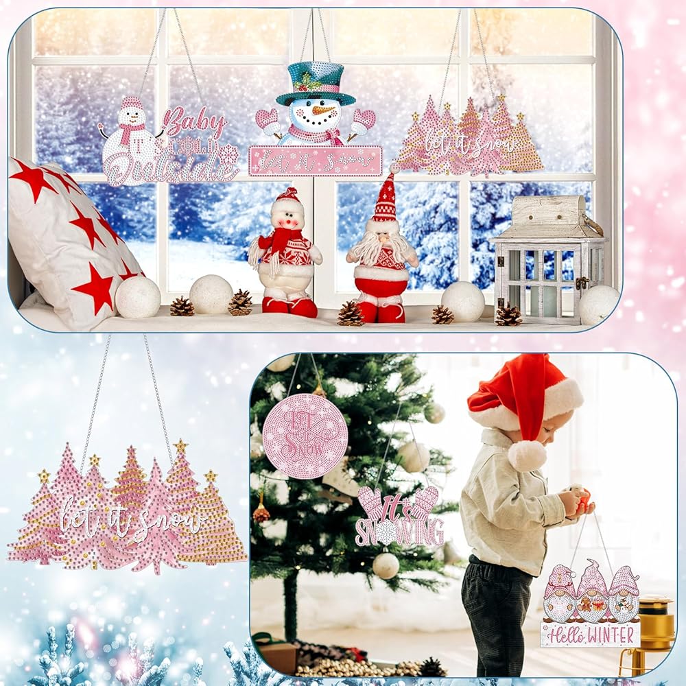 • Rich Styles for Creative Fun: no more worries about missing tools or inadequate rhinestones; Our Christmas pink winter diamond kits offer a complete package; It includes 6 pink winter themed diamond hanging kits, all necessary tools, ample rhinestones, and hanging chains; Just unbox and let creativity flow