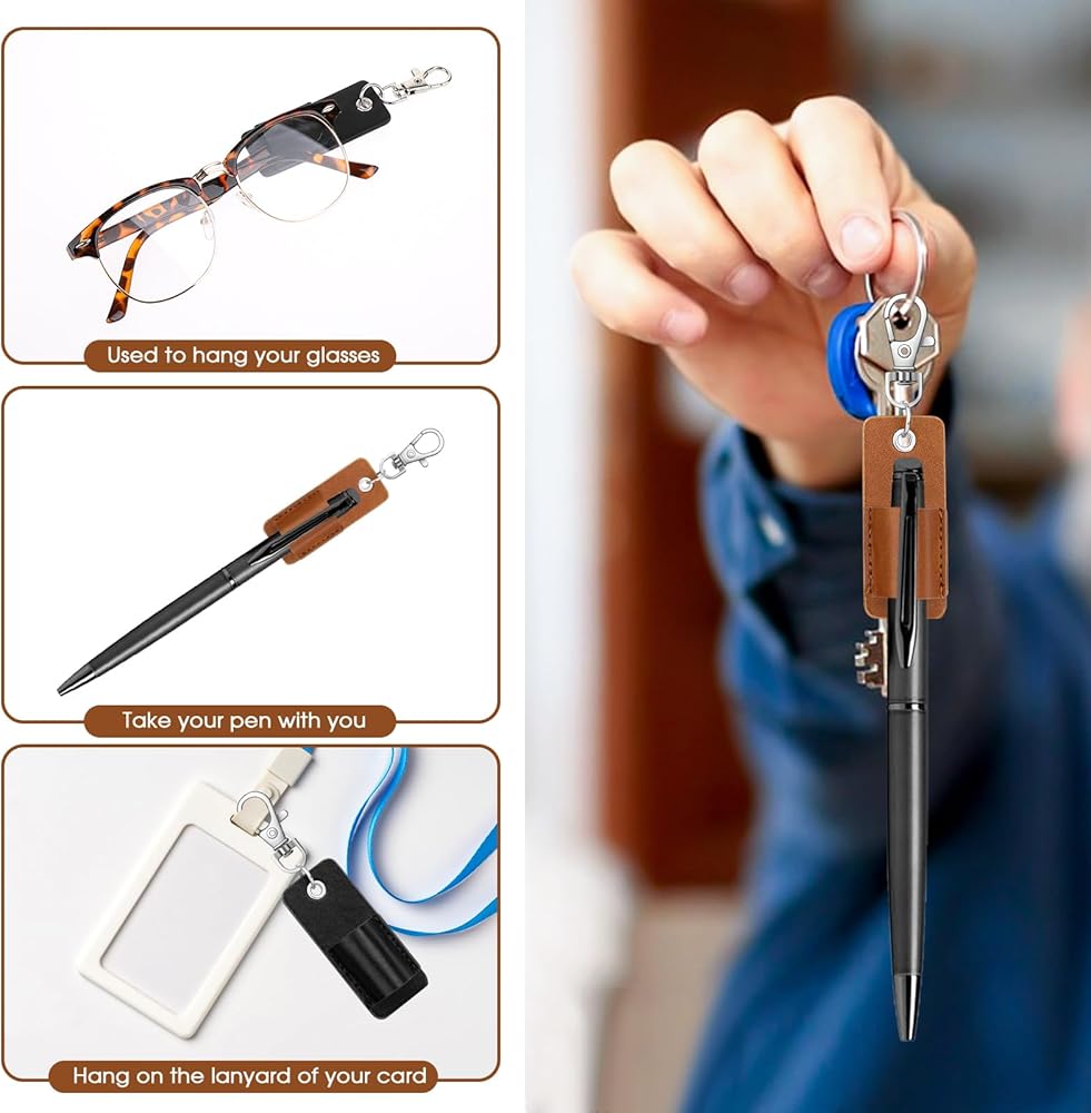• 【Anti-lost】You will receive 6 leather pen holders, 3 black and 3 brown, enough for your daily use or to share with family and friends. There is a hook that can be hung on your clothes, neck or keychain, so even if you have a bad memory, you won't lose your pen or glasses.