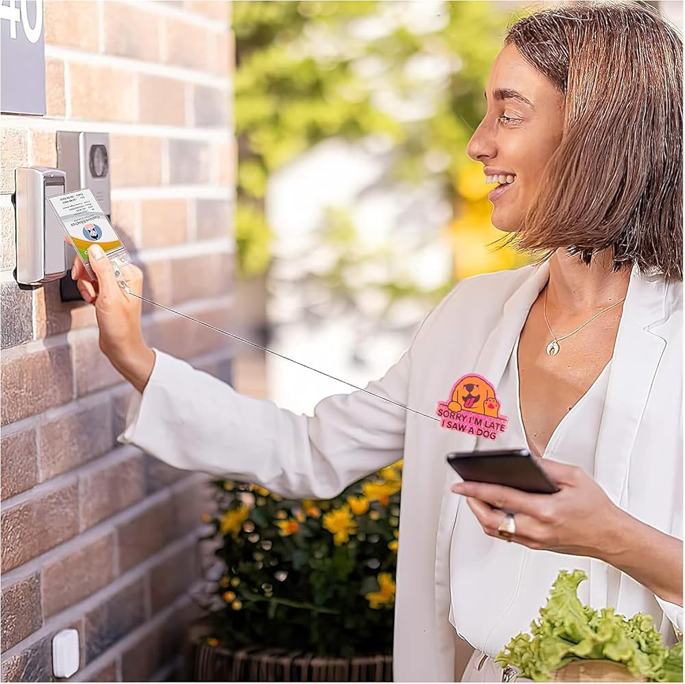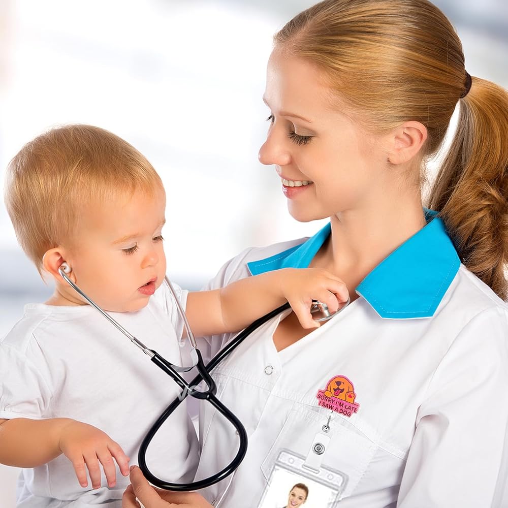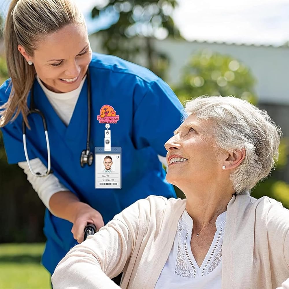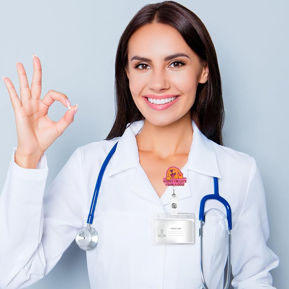 Christmas Badge Reels Retractable: Sorry I'm late I saw a dog badge reels is made of shiny acrylic, and its unique design makes it delicate and cute, resistant to fading, and lightweight to wear. Glued to its back is a retractable badge reel with alligator clip, which is made of high quality ABS material