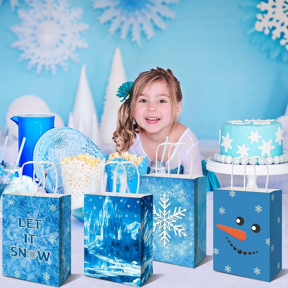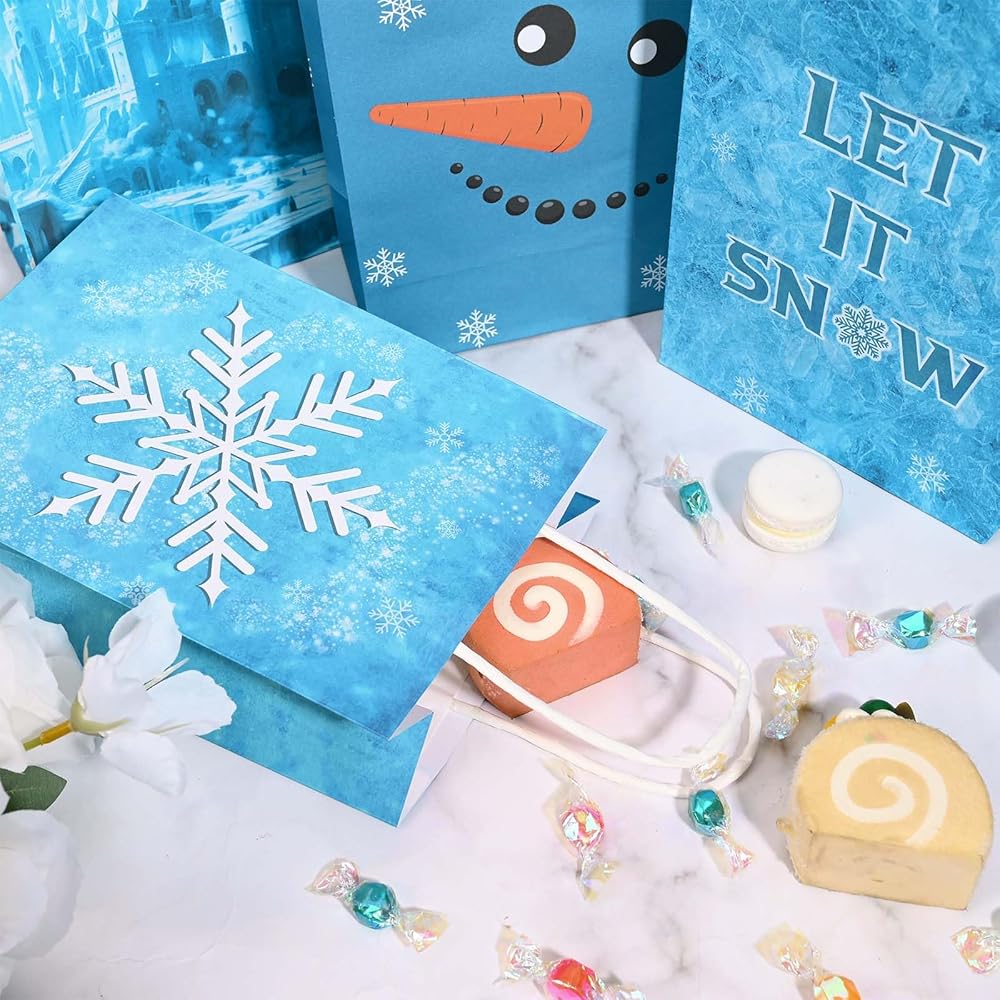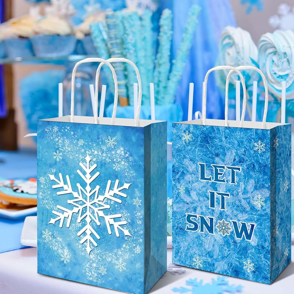 24Pcs Snowflake Party Gift Bags with Handles Winter Wonderland Goodie Candy Bags for Christmas Party Winter Holidays Princess Birthday Party Supplies