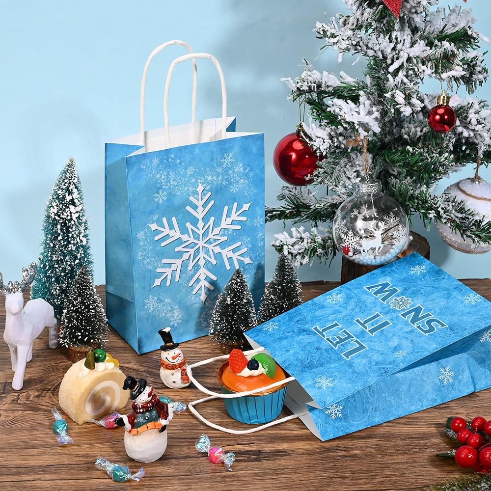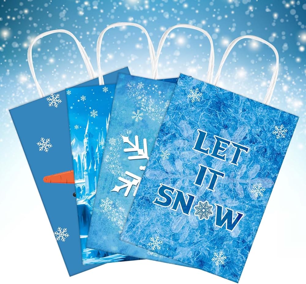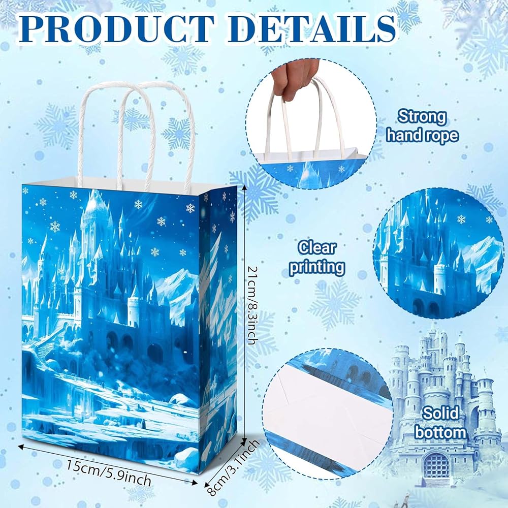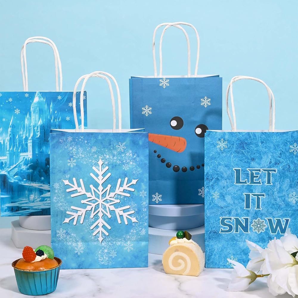 24Pcs Snowflake Party Gift Bags with Handles Winter Wonderland Goodie Candy Bags for Christmas Party Winter Holidays Princess Birthday Party Supplies