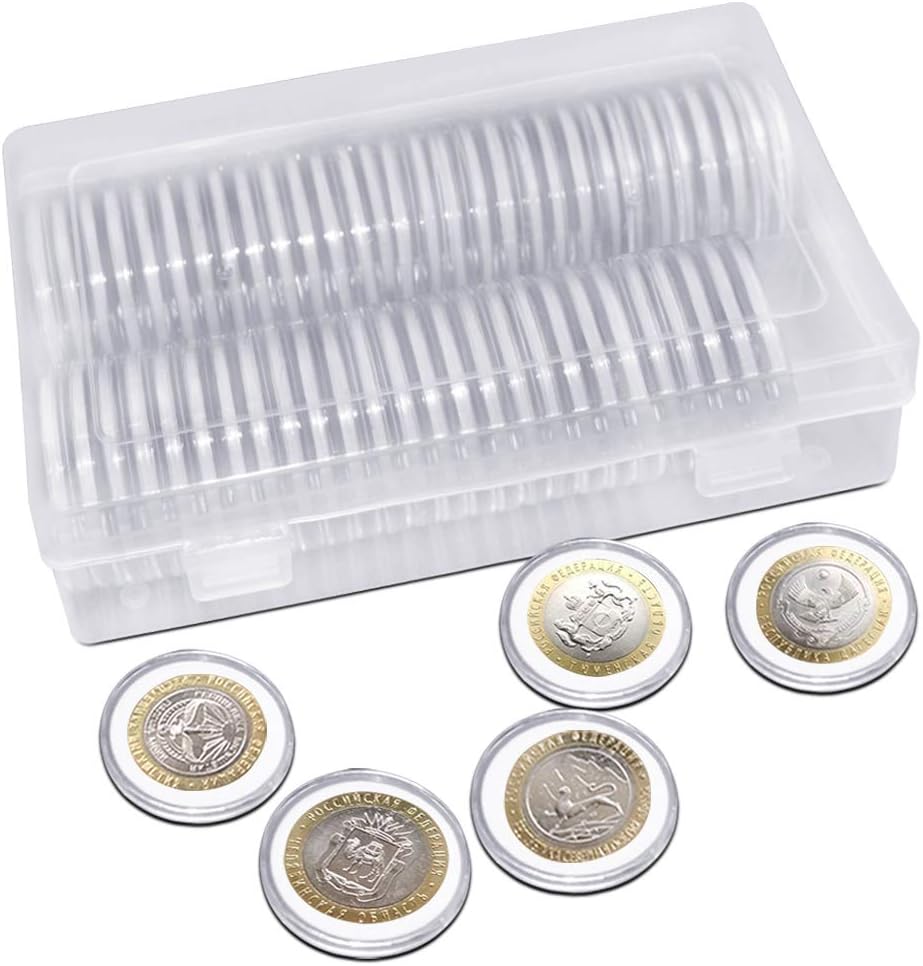 مواد عالية الجودة - كبسولات العملات المعدنية مصنوعة من مواد بلاستيكية شفافة وسميكة، ناعمة الملمس، مقاومة للغبار ومقاومة للأكسدة.