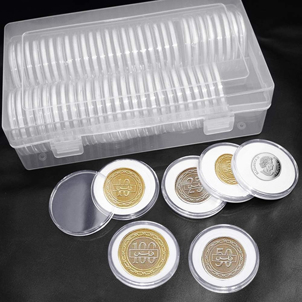 مجموعة مكونة من 60 كبسولة عملات معدنية (46 مم) مع حشية إسفنجية، حاوية تخزين حامل العملات المعدنية من SourceTon مع صندوق منظم للتخزين لمستلزمات جمع العملات المعدنية