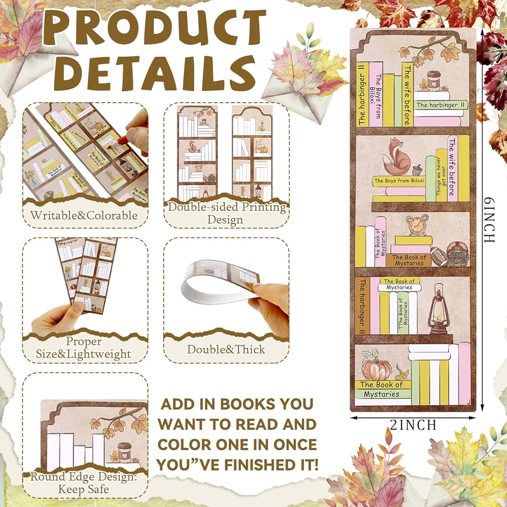 Our bookshelf tracker bookmarks are designed to satisfy the needs of book lover. They are convenient for students and adults to read. With their easy-to-read and double-sided design, you'll never lose track of your reading progress. This simplifies your reading experience and allows you to fully immerse yourself in the story.