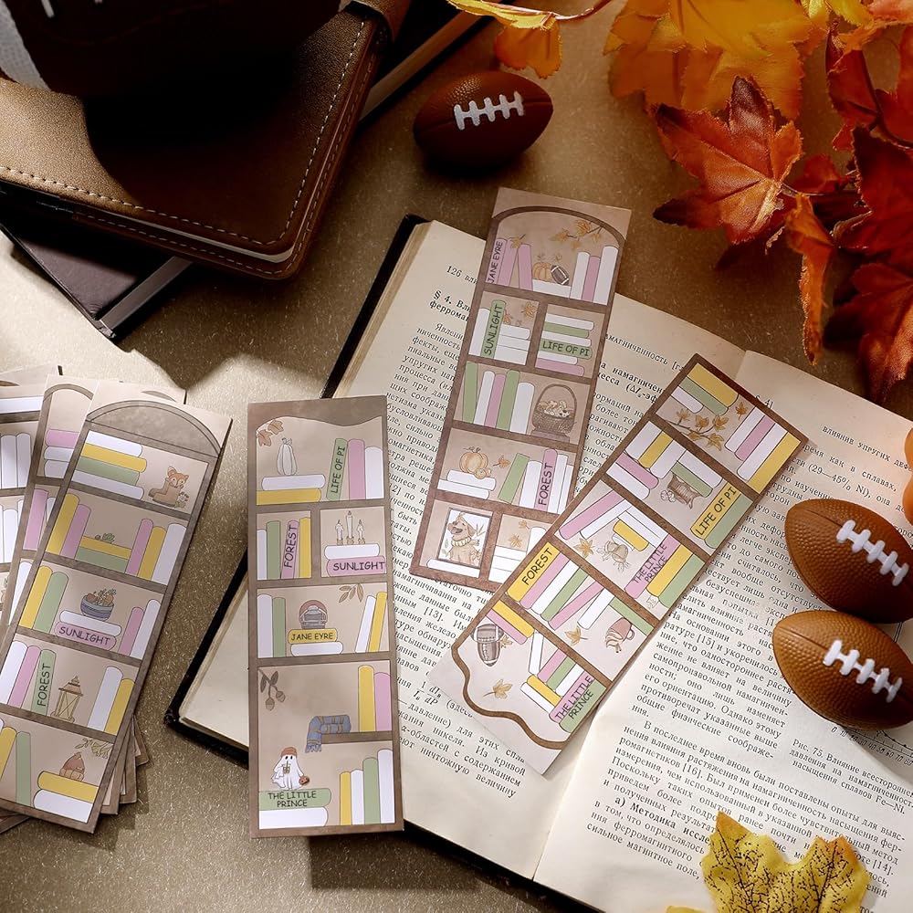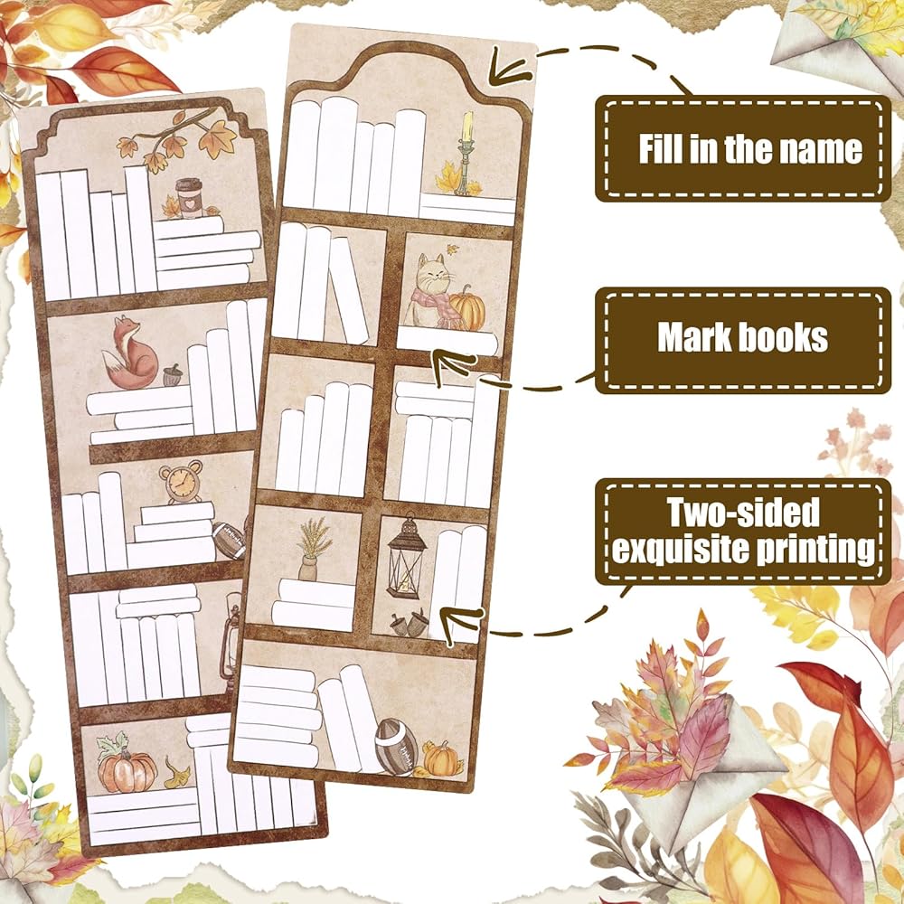 Eersida 100 قطعة من الإشارات المرجعية لتتبع الكتب وتصميم رف الكتب والإشارات المرجعية على الوجهين لصفحة القراءة وعلامات الكتاب السائبة لقراءة الإشارات المرجعية لمحبي الكتب والطلاب المعلمين (نمط الخريف)
