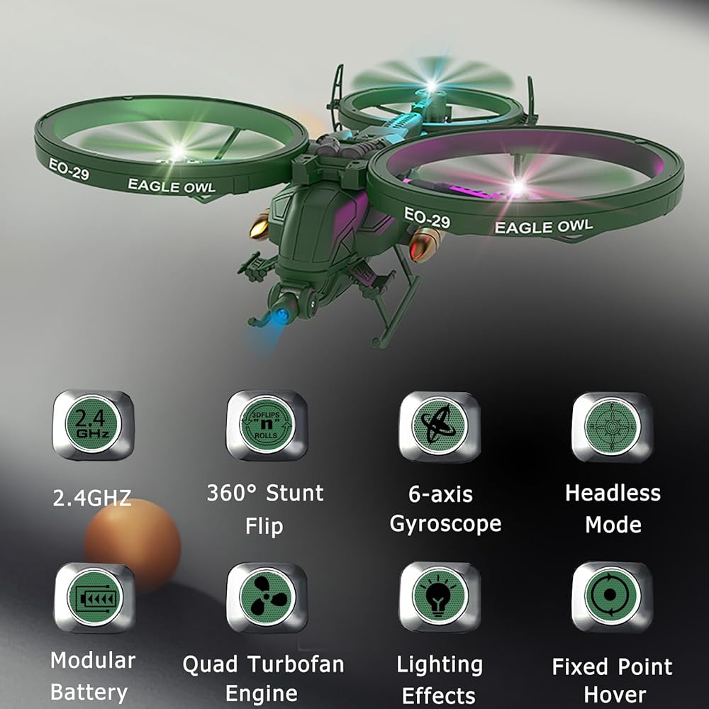 وظيفة الوجه: تتميز الطائرة بدون طيار بوظيفة الوجه، والتي يمكنها قلب 360 درجة في الهواء، مما يزيد من متعة وإثارة الطيران.
