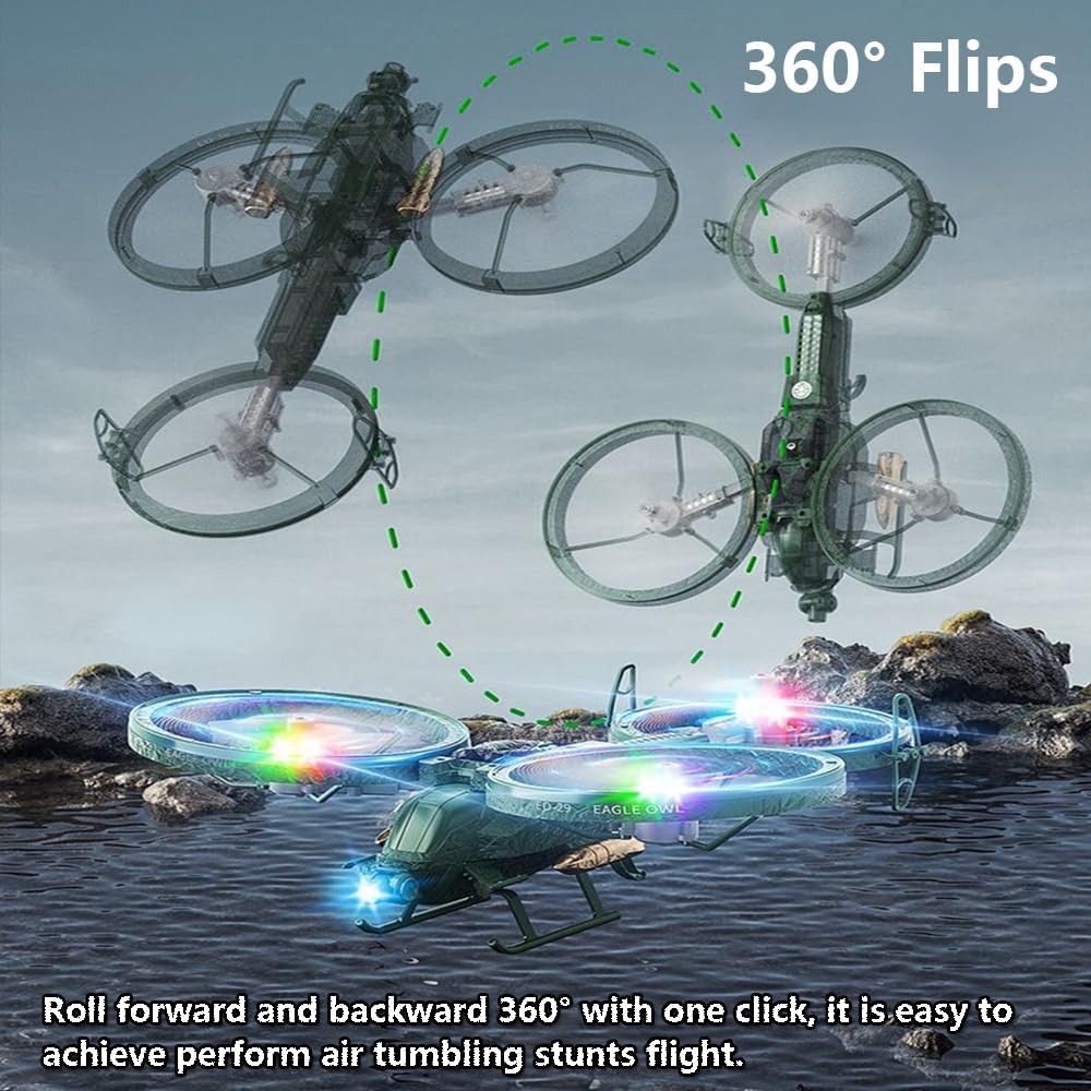 طائرة بدون طيار من GoolRC RC مع كاميرا، طائرة تحكم عن بعد 2.4 جيجا هرتز 6CH، طائرة هليكوبتر جيروسكوبية 6 محاور RC، مقاتلة طائرات RC مع تقلبات ثلاثية الأبعاد، طيران دائري، وضع بدون رأس، تحوم تلقائي، مصابيح LED وبطاريتين