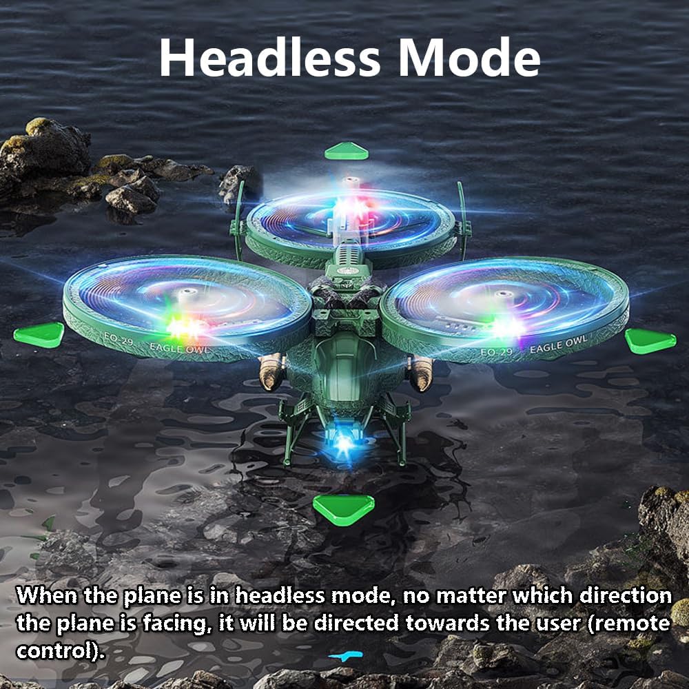 وضع بدون رأس: في وضع بدون رأس، تتجاهل الطائرة اتجاهها الحالي وبدلاً من ذلك تحدد اتجاه الطيران بناءً على تشغيل جهاز التحكم عن بعد، وهو مفيد جدًا للمبتدئين أو الأشخاص الذين ليسوا على دراية بأجهزة التحكم في الطيران.