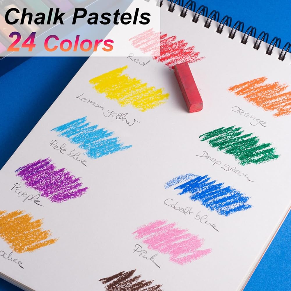 • طيف ألوان نابض بالحياة: استكشف مجموعة متنوعة من 24 عصا طباشير باستيل ذات جودة فنية، كل منها يمثل لونًا حيويًا وفريدًا من نوعه.