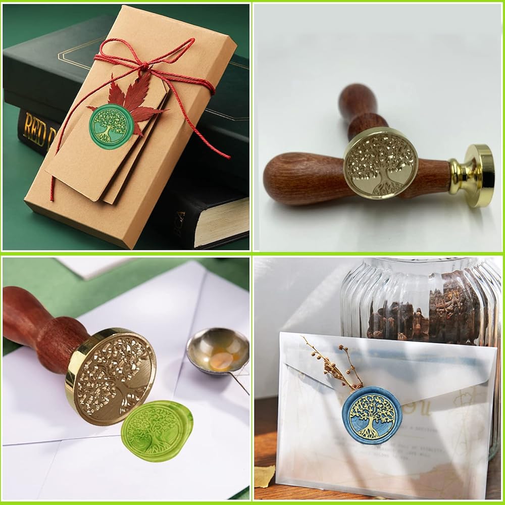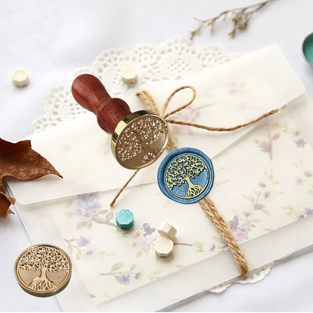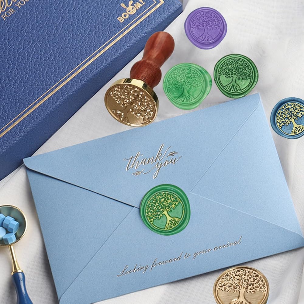 ختم شجرة الحياة لإضافة عنصر فريد إلى الأظرف أو البطاقات. إنها فكرة رائعة أن تفاجئ مستلميك! قم بختم نمط ختم الشمع المفضل لديك لتعزيز الشعور بالاحتفال.