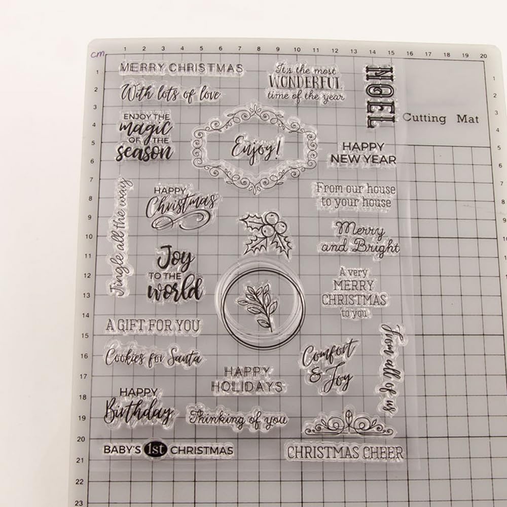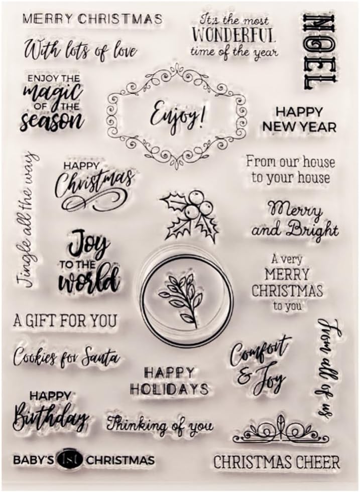 Beautiful Design : Elements of the clear stamp include a variety of holiday words Christmas New Year designs. They are enough to meet your needs, can freely to match, can be used for photo album scrapbook or any handmade card decoration.