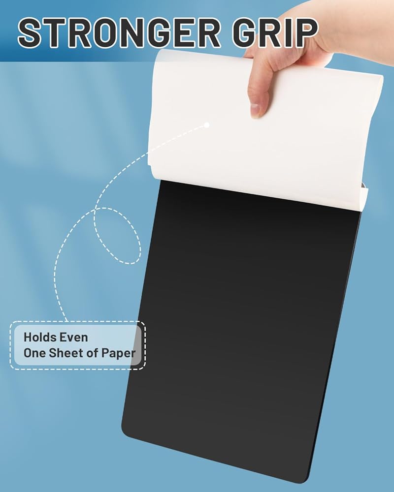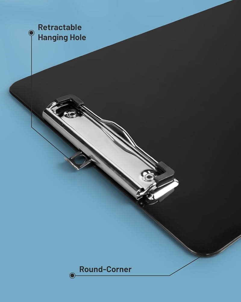Secure Low-Profile Clips: Equipped with strong low-profile clips that can securely hold between 80 to 100 sheets of A4/Letter size paper, providing a reliable grip without slipping