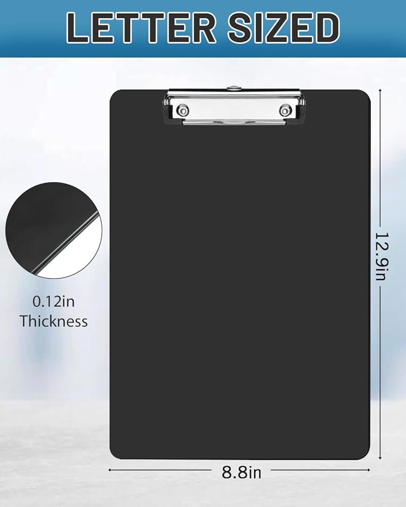 Durable Construction: Made from lightweight, 3mm thick plastic, this black clipboard offers exceptional durability and longevity, perfect for frequent use in both indoor and outdoor settings