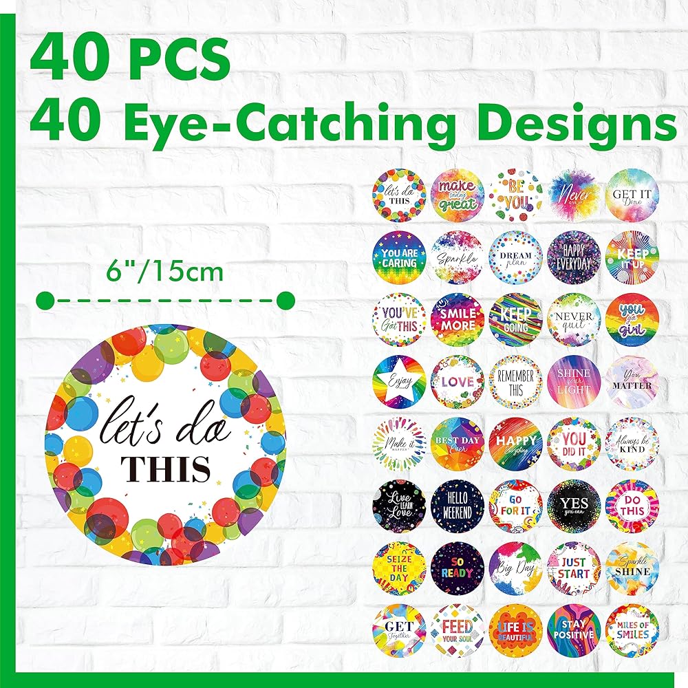 حزمة قيمة: مجموعة الديكور التحفيزية تأتي مع 40 قطعة من البطاقات الملونة في 40 تصميمًا مختلفًا، كمية كافية كافية لتلبية احتياجاتك الزخرفية. الكلمات التحفيزية ذات الأنماط الملونة والملفتة للنظر توفر المزيد من الطاقة وتضفي مظهرًا جديدًا على الفصل الدراسي ولوحة الإعلانات.