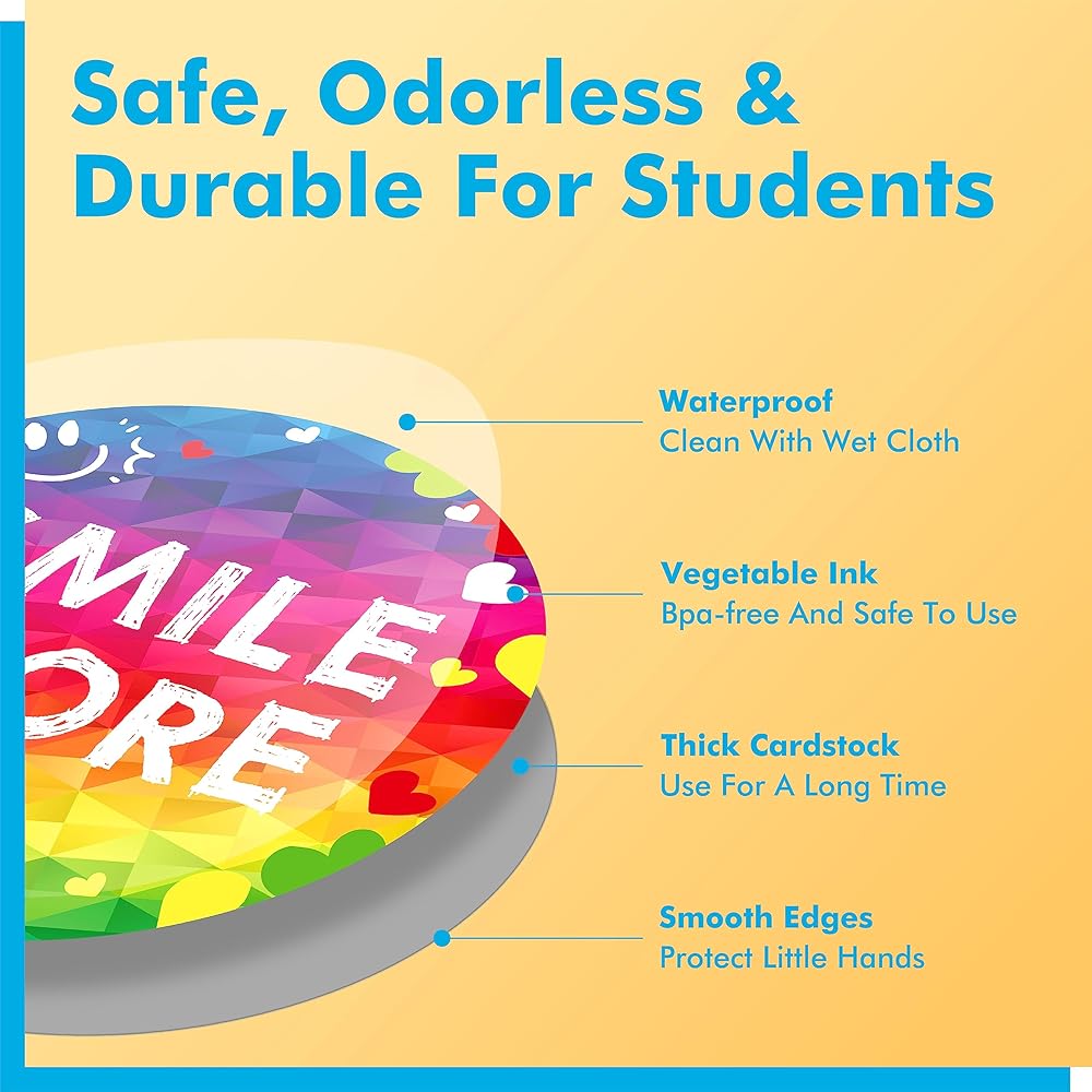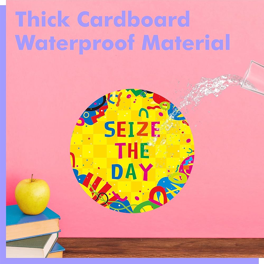 تصميم فريد: تم تصميم ديكورات لوحة الإعلانات بشكل جيد بأنماط نابضة بالحياة، وخطوط كبيرة مع عناصر ملونة في 40 تصميمًا فريدًا تجعل البطاقات لافتة للنظر وحيوية وأنيقة. يبلغ قطر كل قطعة حوالي 6 بوصات. مع وجود مساحة كبيرة للكتابة، يمكن للطلاب إنشاء أي مشروع حرفي لتزيين الفصل الدراسي، مثل التوقيع على القصاصات.