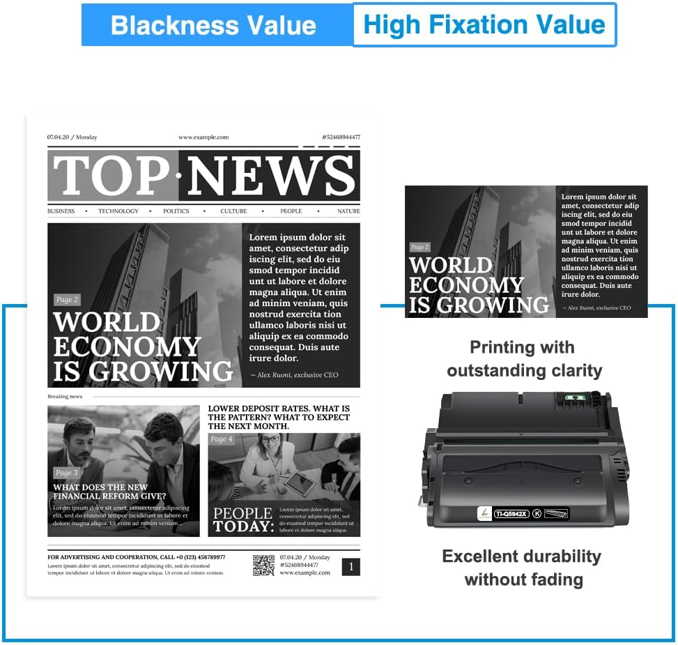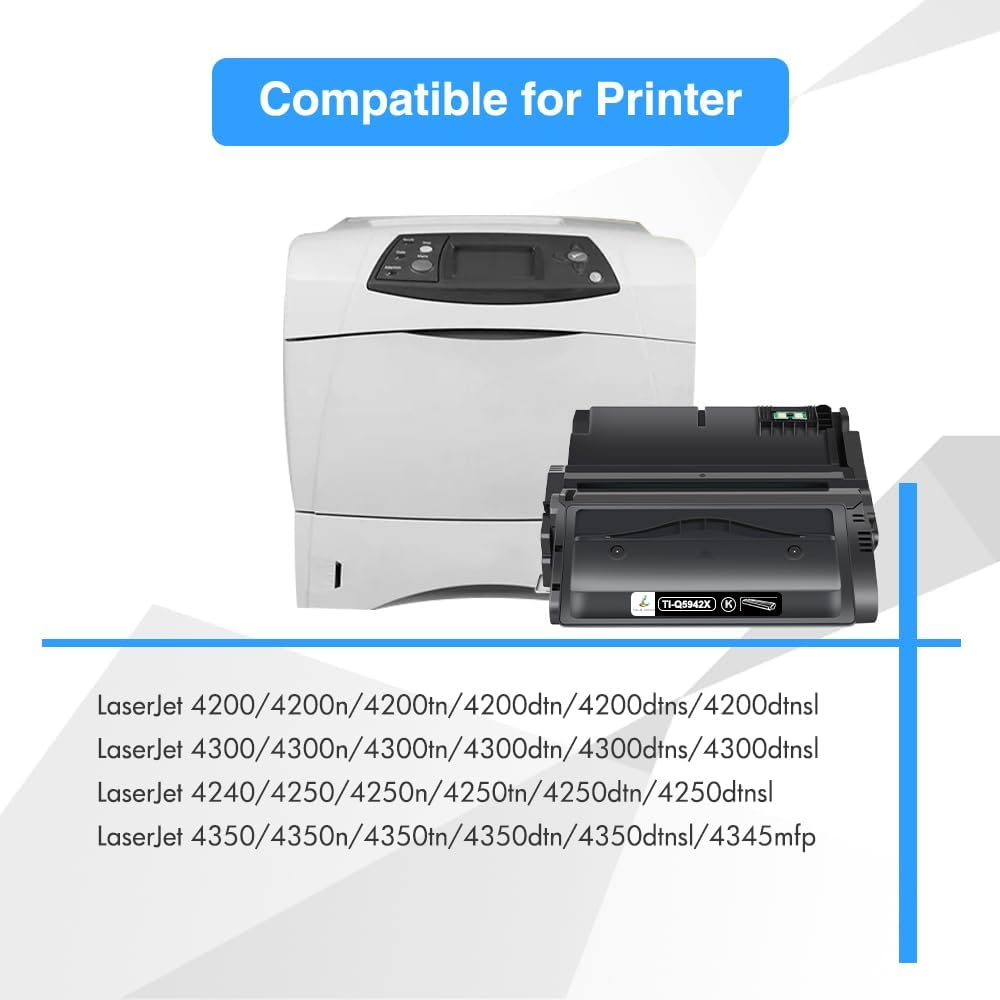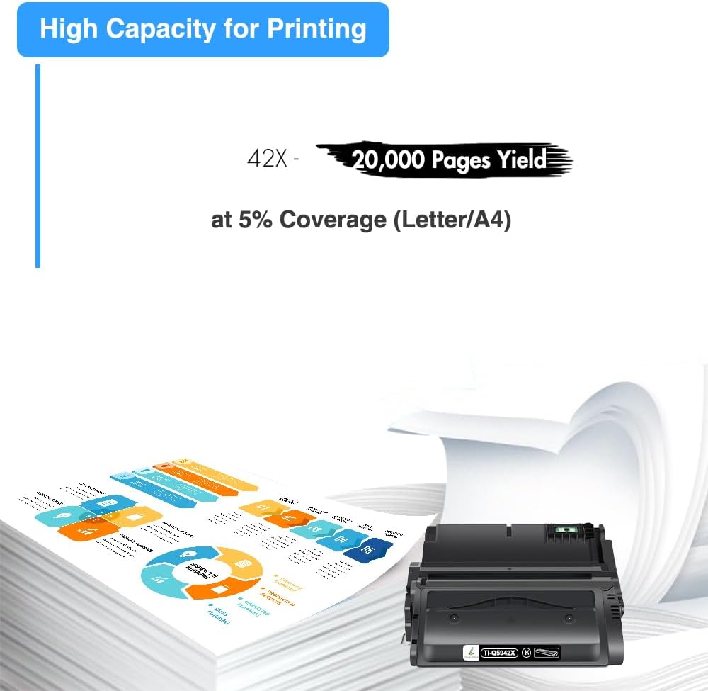 - محتويات العلبة: عبوة واحدة متوافقة مع خراطيش الحبر الأسود HP 42X 42A Q5942X Q5942A