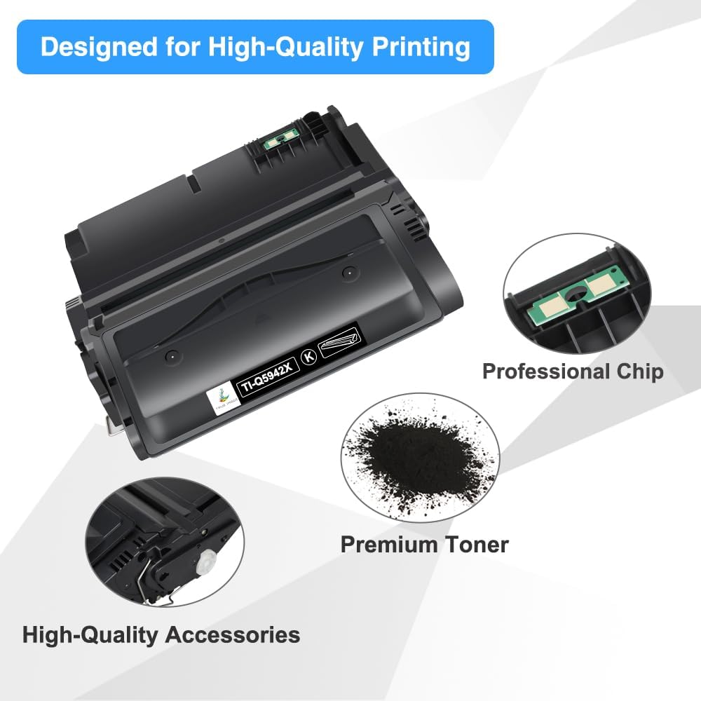 خرطوشة حبر أسود 42X 42A Q5942X Q5942A Q1338X Q1338A متوافقة مع HP 42X 42A 38X 38A لـ 4250 4200 4350 4300 4250N 4240 4350N 4250TN 4250DTN 4350DTN حبر الطابعة 4350TN (عبوة واحدة)