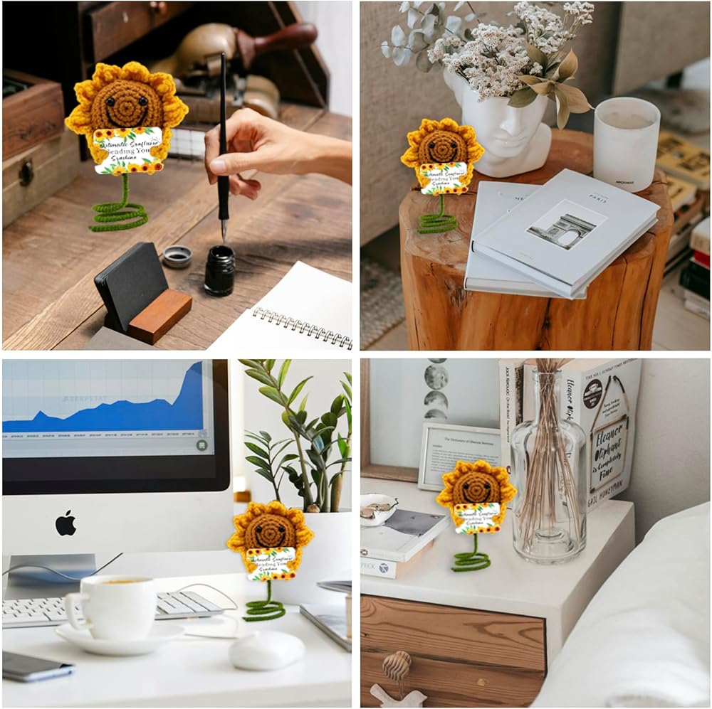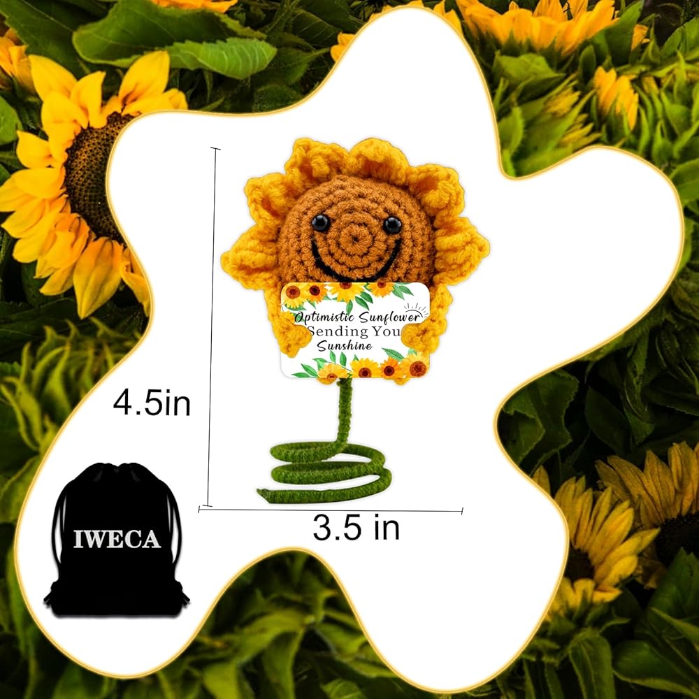 تخزين المواد للنساء هدايا الصداقة للنساء أفضل صديق المفاتيح للنساء عباد الشمس دمية الكروشيه أصدقاء الهدايا 3 بوصة دمية الصوف محبوك مع بطاقة إيجابية لوحة القيادة سيارة الزينة