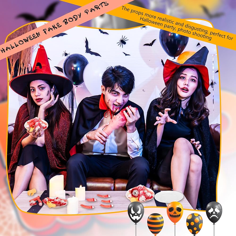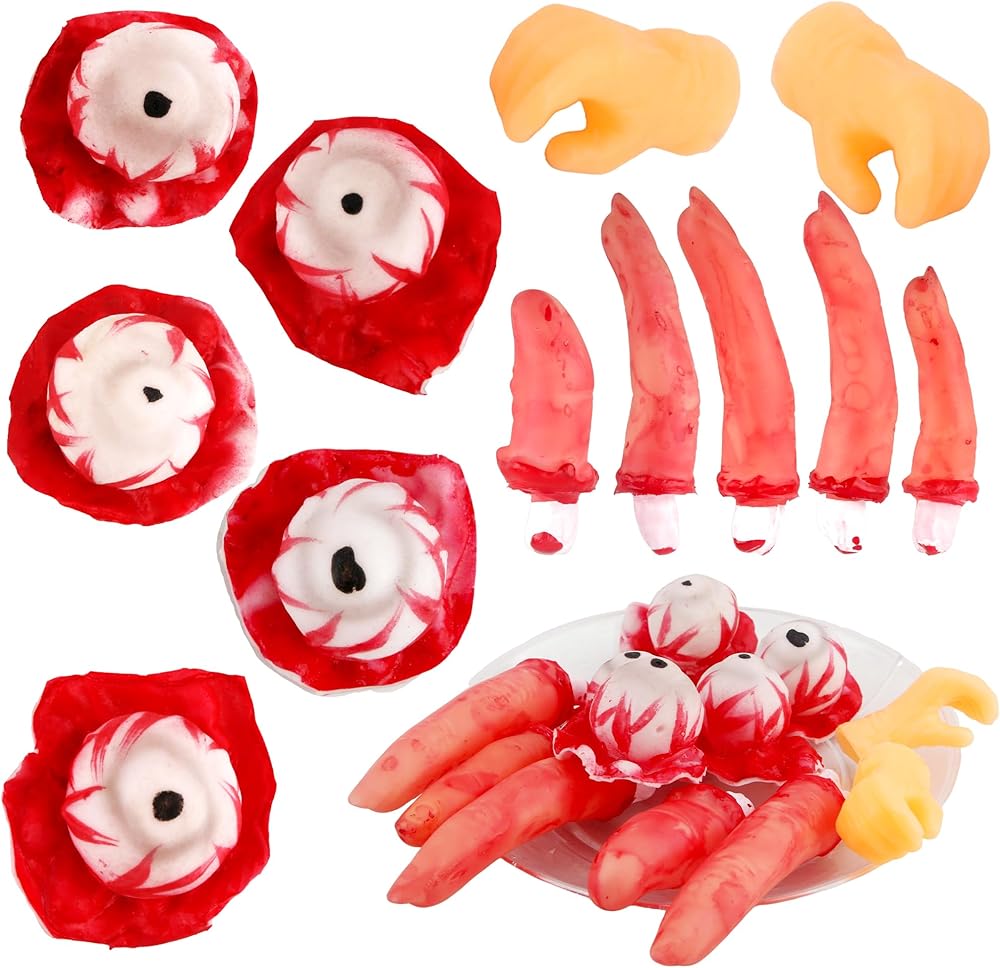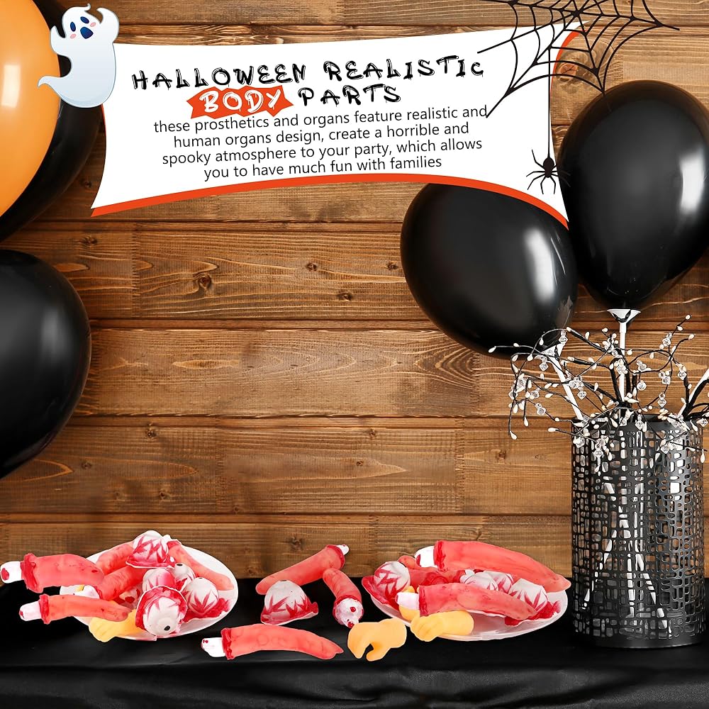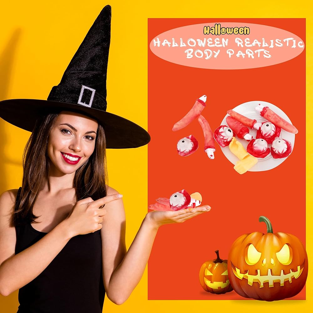 Haconba 12 Pieces Halloween Body Parts Fake Plastic Severed Hands Broken Fingers Eyes Body Organs for Halloween Haunted House Vampire Zombie Party Decorations Prank Prop