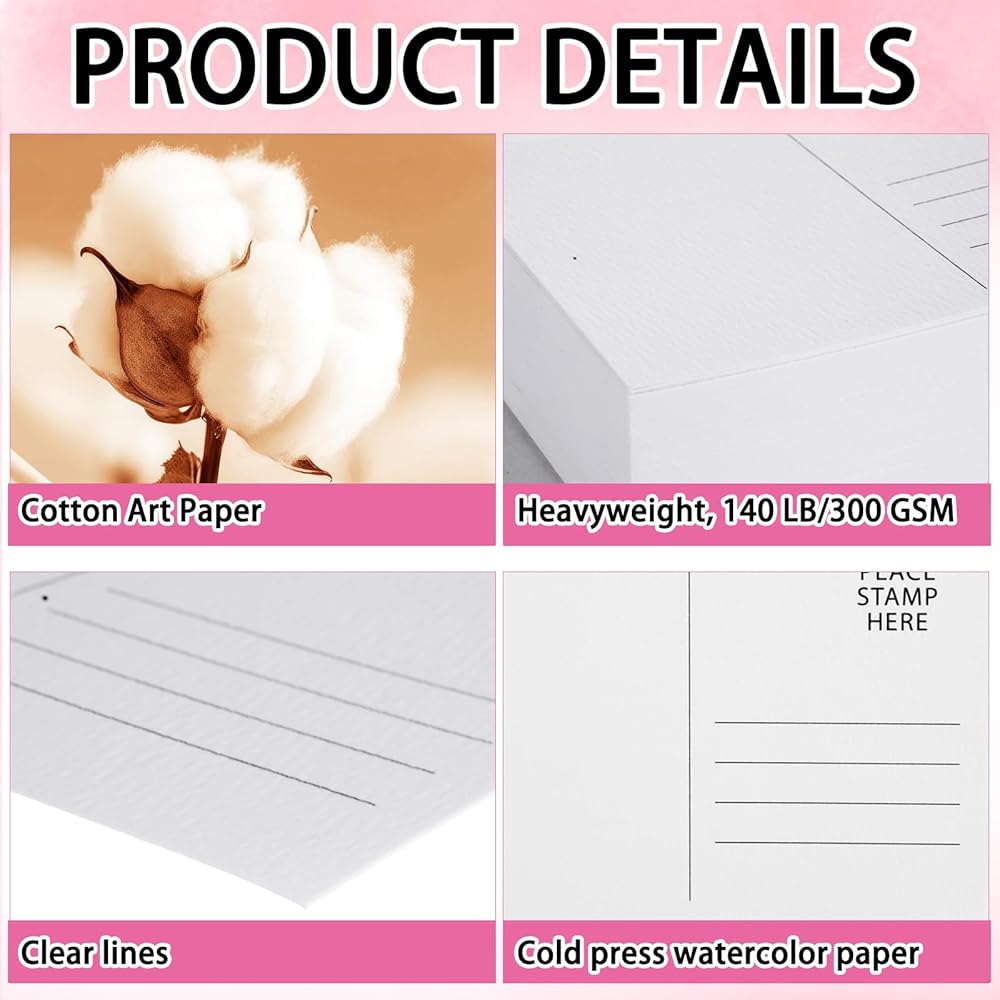 -The blank postcards for mailing are highly absorbent, allowing for even pigment absorption and distribution, reducing warping and bending of the paper.