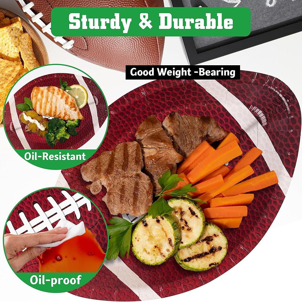 • 🏈【حجم كبير】بقطر 27.94 سم، توفر هذه الأطباق الورقية البيضاوية الكبيرة لكرة القدم مساحة واسعة لطعامك، مما يجعل من الممكن إعداد طعام كافٍ لجميع ضيوفك. يمكن أن تعمل الأطباق الورقية الكبيرة لكرة القدم كأطباق عشاء أو أطباق شحن أو أطباق حلوى أو سلطة أو أطباق تقديم لحمل الساندويتشات والسوشي ورقائق البطاطس والكب كيك والحلوى والمزيد من أجل راحتك.