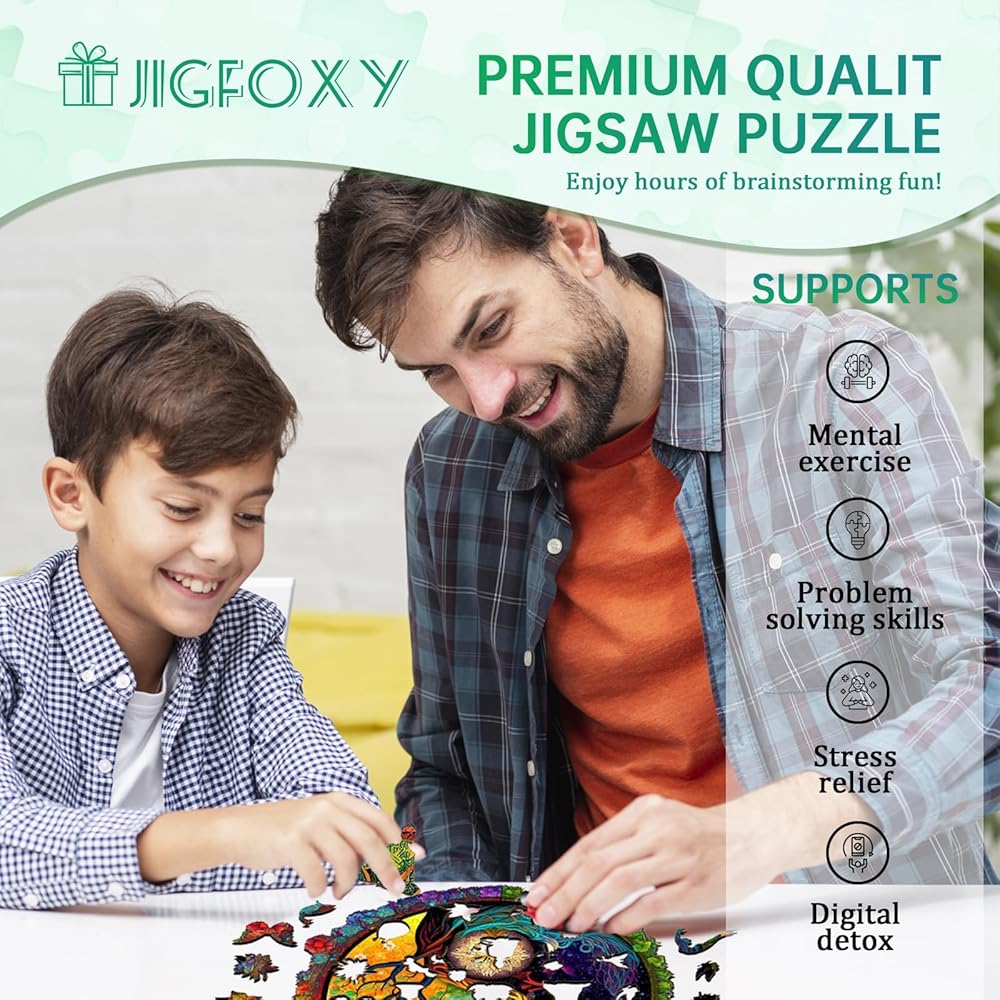 【مجموعة ألعاب ألغاز عائلية】ألغاز Jigfoxy العائلية الخشبية تعزز التنسيق بين اليد والعين والتركيز والصبر والتفكير المنطقي ومهارات حل المشكلات. استعد لتجربة مثيرة للعقل حيث ستنشغل بالألغاز طوال اليوم مع أحجية الصور المقطوعة الجذابة هذه.