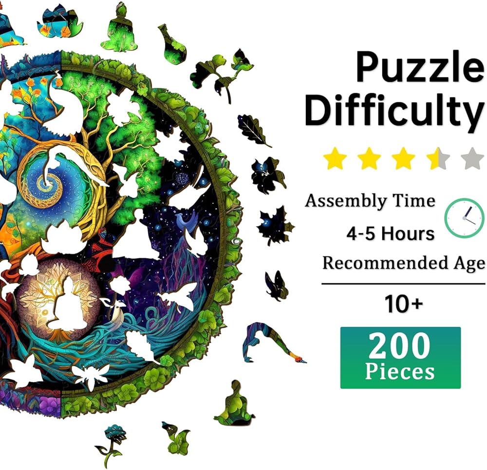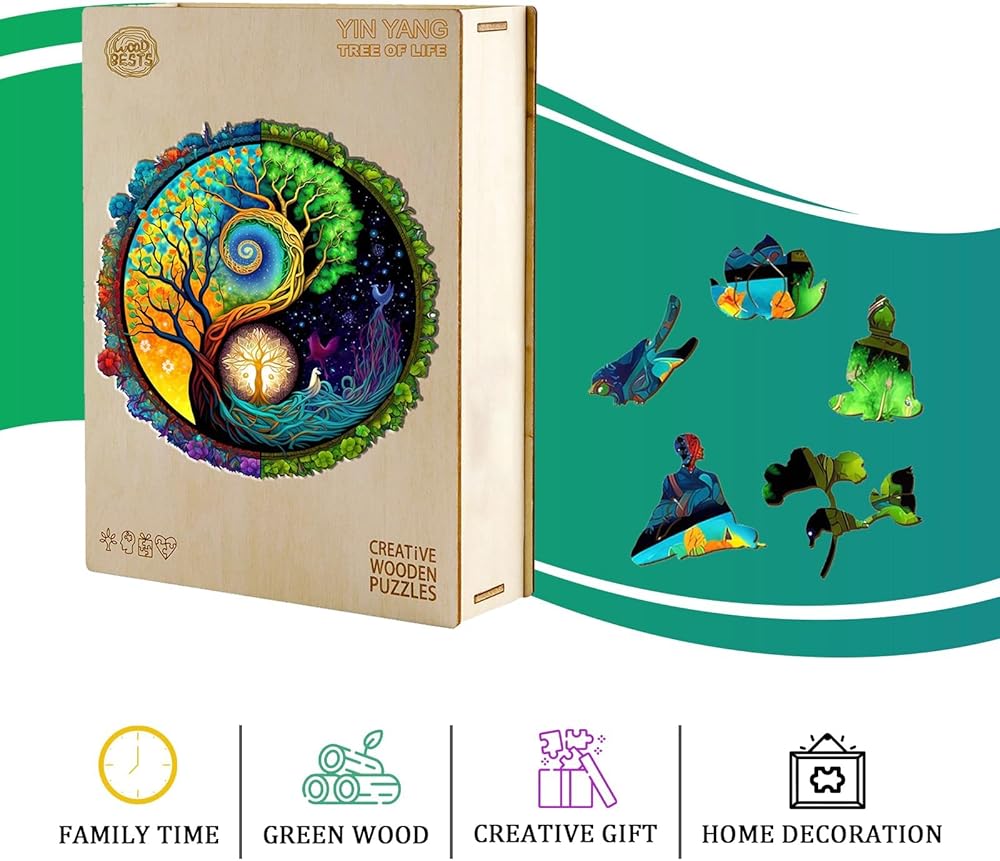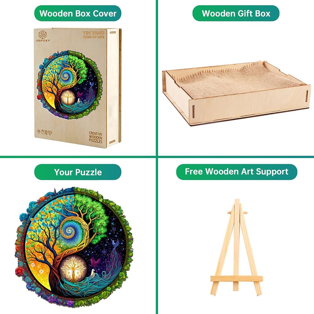 【ألغاز Yin Yang Tree Life الخشبية】استمتع بوقت الفراغ مع أحجية الصور المقطوعة المميزة من Jigfoxy. تحتوي الأحجية على 300 قطعة، وهي لعبة ممتعة ومليئة بالتحديات ومناسبة لعشاق الألغاز من جميع الأعمار، إنها طريقة رائعة للتواصل مع العائلة والأصدقاء أو للاسترخاء بعد يوم حافل.