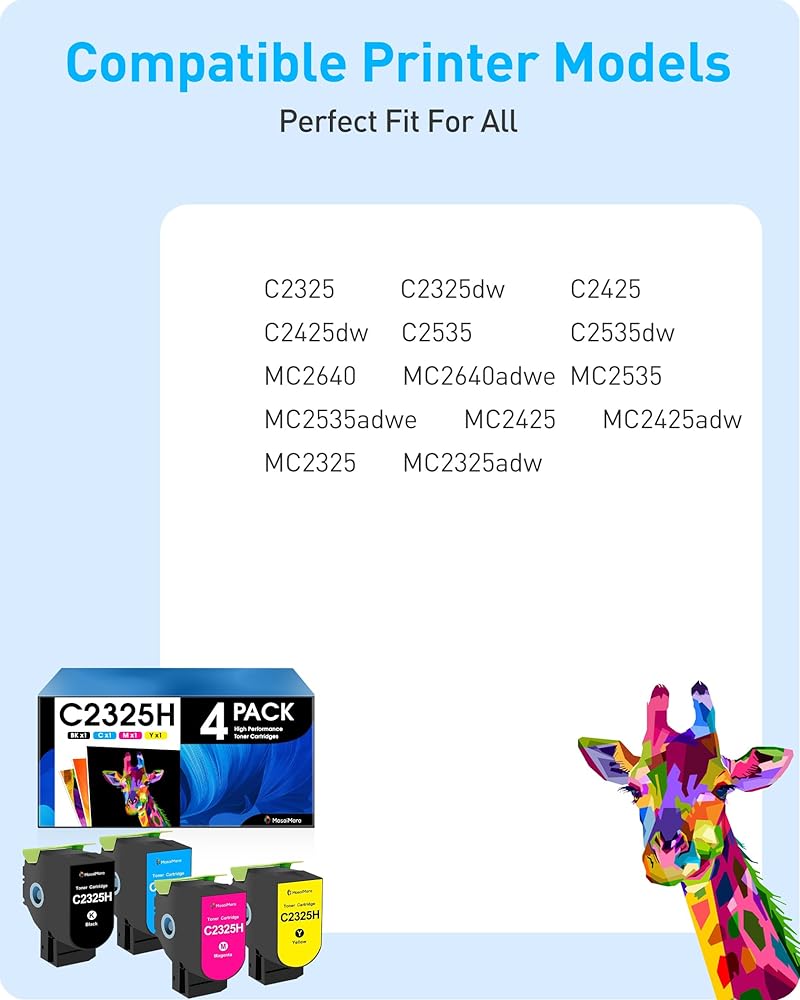 استبدال خراطيش الحبر المتوافقة مع MasaiMara لطابعة Lexmark C231H C2325H لطابعة Lexmark C2325dw C2425dw C2535dw MC2640adwe MC2535adwe MC2425adw MC2325adw (أسود سماوي أرجواني أصفر، 4 عبوات)