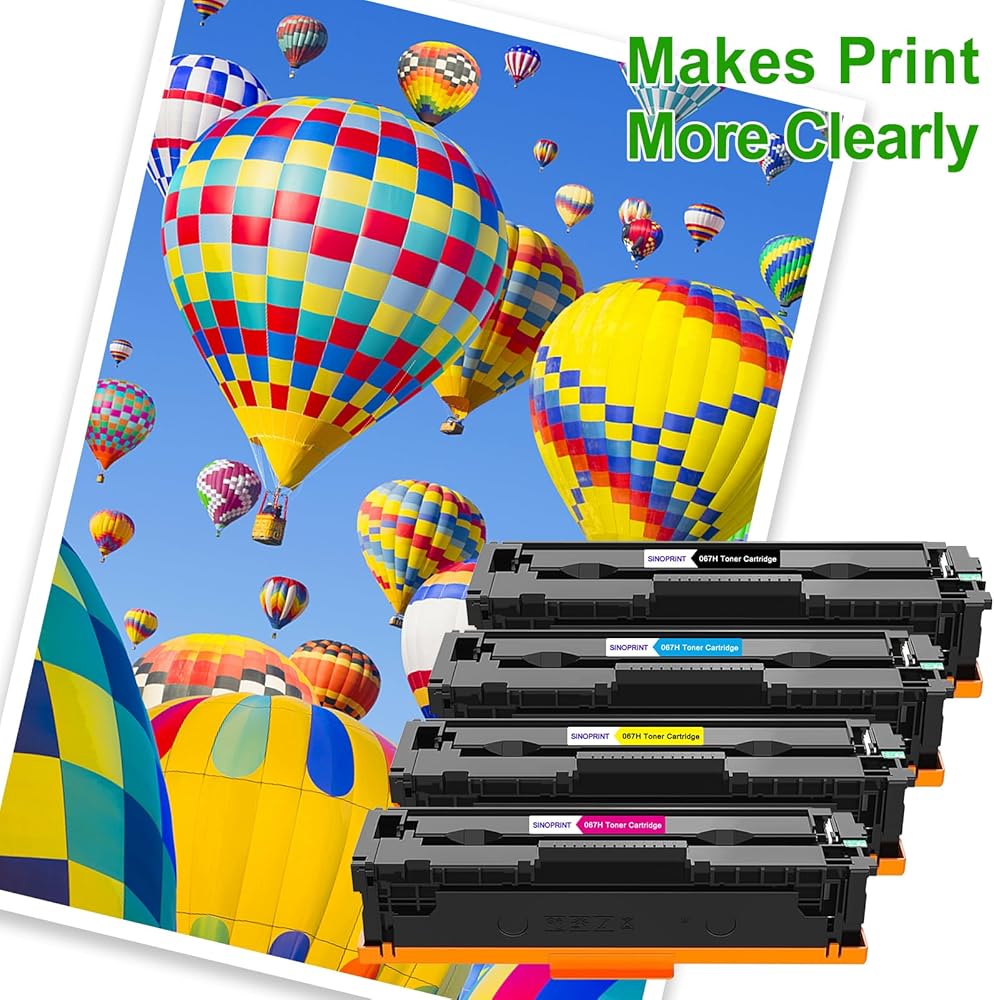 - محتويات العلبة: 4 عبوات SINOPRINT متوافقة مع خرطوشة الحبر Canon 067H. (CRG-067H CRG067H)
