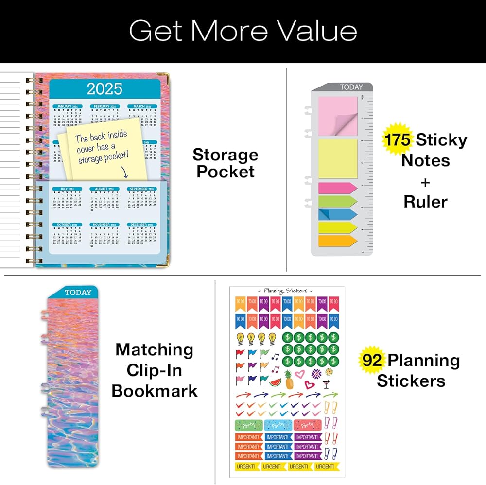 مخطط السنة الأكاديمية 2024-2025: (يونيو 2024 حتى يوليو 2025) 5.5 بوصة × 8 بوصة مخطط يومي وأسبوعي وشهري وجدول أعمال سنوي. مجموعة الإشارة المرجعية ومجلد الجيب والملاحظات اللاصقة (Summer Bliss)
