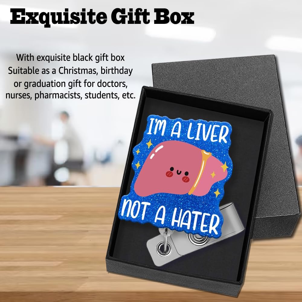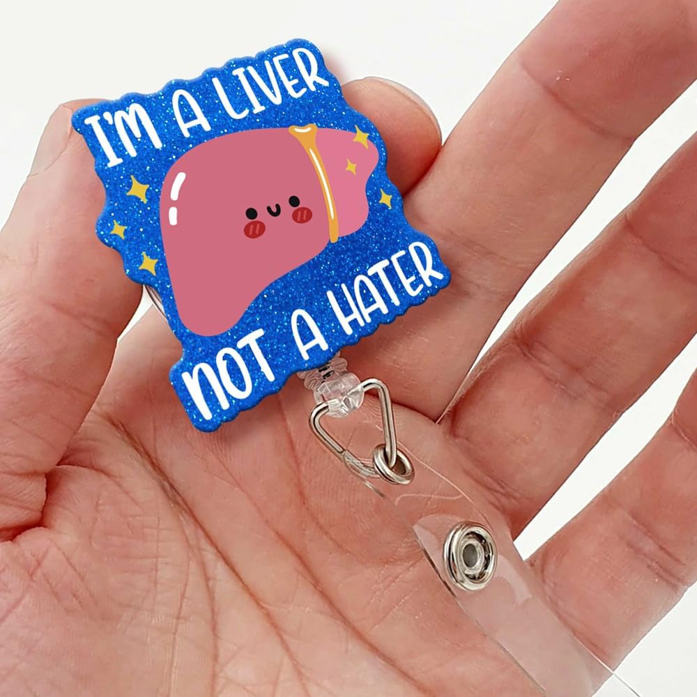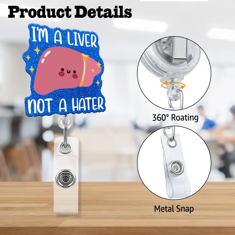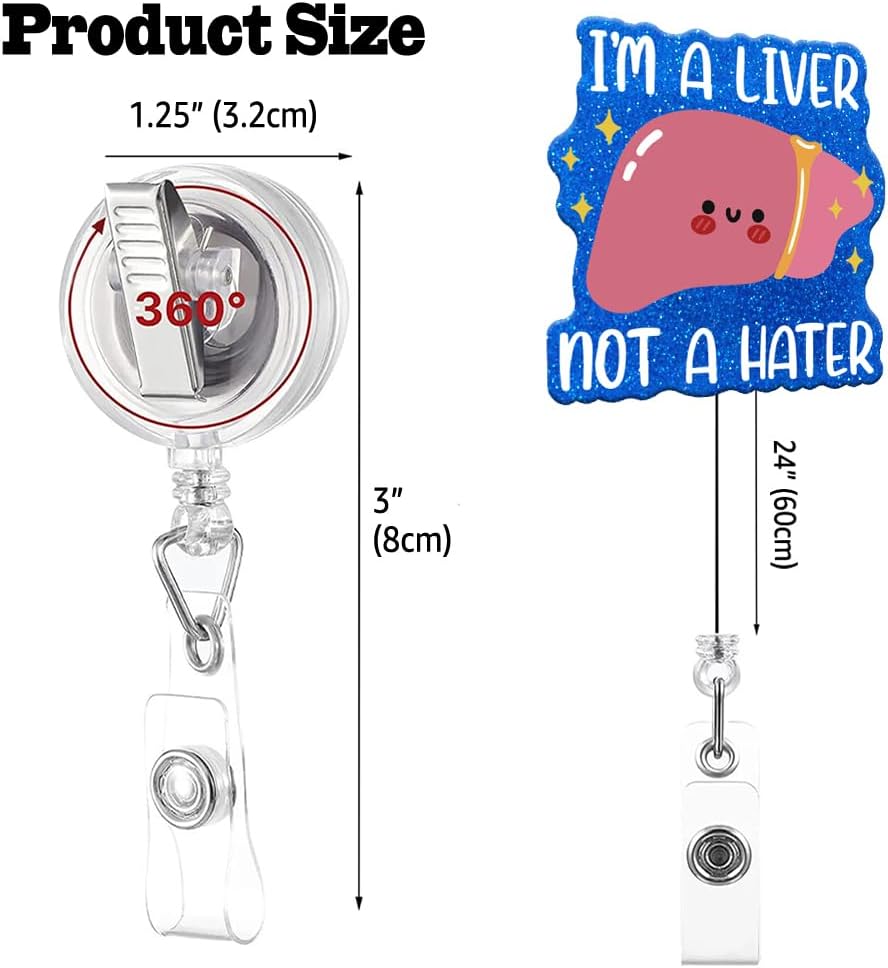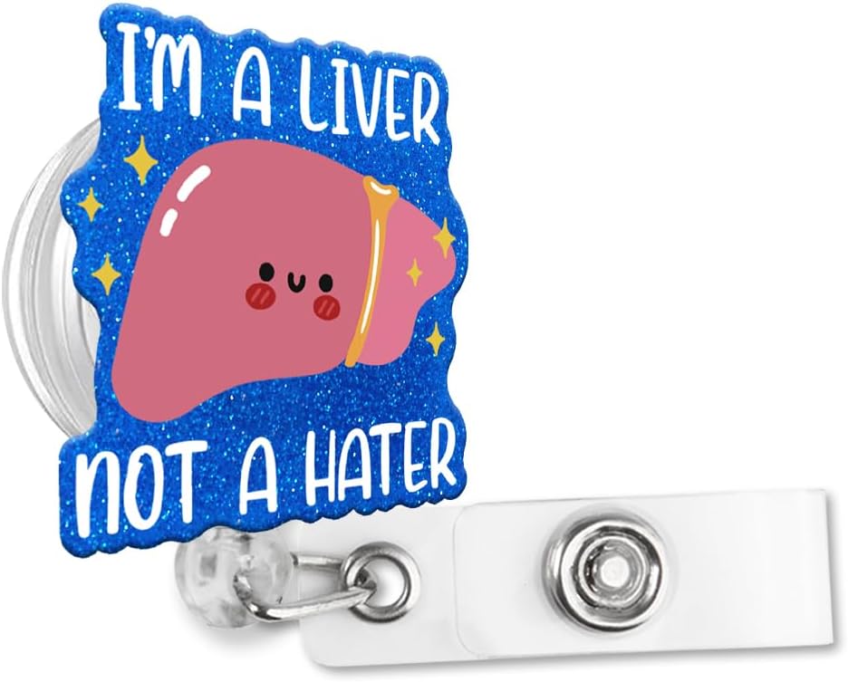 أنا كبد وليس كارهًا بكرة شارة لامعة قابلة للسحب مع مشبك التمساح، هدية حامل شارة عيد الميلاد المضحكة لطبيب الكبد وأخصائي أمراض الجهاز الهضمي والطبيب والممرضة والتمريض والعمل المكتبي الطبي